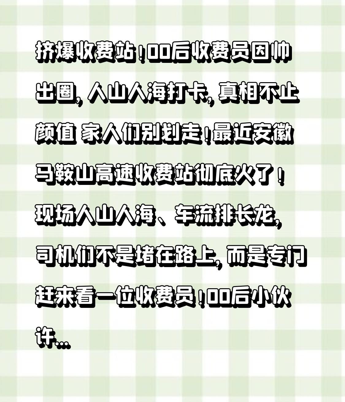 挤爆收费站!00后收费员因帅出圈,人山人海打卡,真相不止颜值 家人们别划走!最近安徽马鞍山高速收费站彻底火了!现场人山人海、车流排长龙,司机们不是堵在路上,而是专门赶来看一位收费员!00后小伙许智浩,凭一张脸引爆全网,收费站秒变网红打卡点,这波热度背后,藏着最动人的少年模样! 一段车主随手拍的无滤镜视频,把许智浩送上热搜。192cm模特身高、制服挺拔、五官清秀,网友直呼:远看像肖战、近看像龚俊、侧脸像王鹤棣,一张脸撞脸半个内娱顶流!视频一发,全网沸腾,无数人专程绕路过来,就为看他一眼、打个招呼,窗口前天天围满拍照打卡的人,场面火爆到工作人员都出来维持秩序。 转折点来了! 大家以为他是靠脸吃饭,可深入了解才发现,这份爆红一点不肤浅。许智浩是视觉艺术专业毕业,2024年刚入职,踏踏实实做收费协管员,守窗口、保畅通、微笑服务每一位司机。面对爆红,他腼腆又谦虚:“有那么一点像,但没他们帅”,还说热度是激励,会更认真做好本职工作。不飘不傲、不签网红公司、不搞直播带货,一心守好岗位,这份清醒与踏实,比颜值更圈粉。 很多人说,现在网红遍地都是,可许智浩让人喜欢的,不只是那张干净的脸,更是平凡岗位上的认真与谦逊。他没有因流量迷失,没有把走红当捷径,依旧坚守窗口,用规范服务、真诚态度对待每一位过客。这才是年轻人该有的样子:有颜值更有底线,有流量更有初心。 这一幕也让我们明白:真正的受欢迎,从不是刻意炒作,而是自带光芒。平凡的岗位,认真做就不平凡;普通的职业,踏实干就值得被尊重。许智浩用行动告诉我们,年轻不是浮躁的借口,努力才是最好的名片。 愿每一个在平凡岗位默默发光的人,都能被世界温柔以待;愿每一位年轻人,都能守住初心、脚踏实地,不被流量裹挟,活成自己最闪亮的模样。为这位谦逊努力的00后点赞!