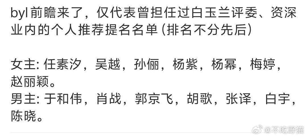 白玉兰业内人士推荐名单🈶,这个名单合理?