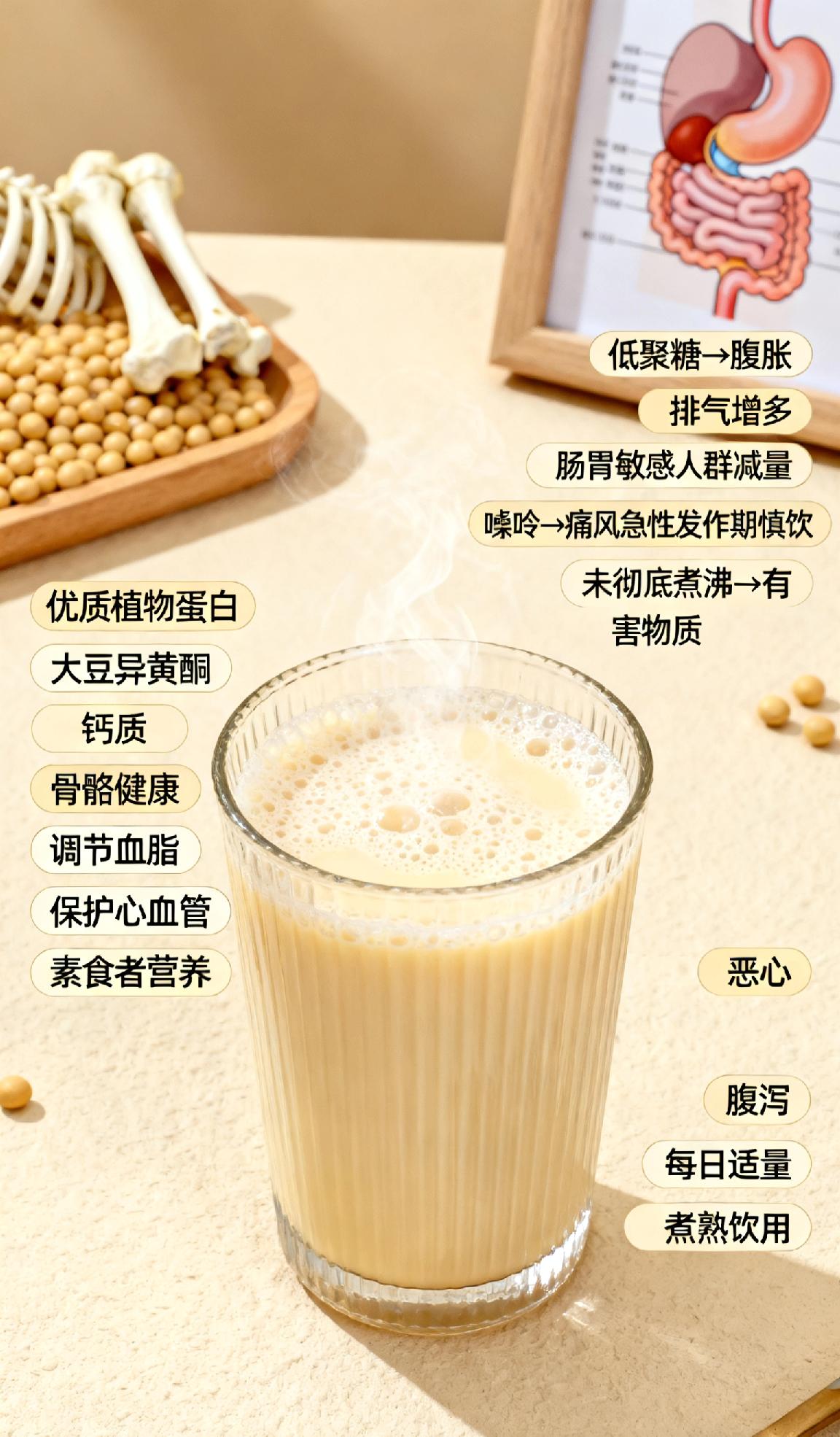 但过量饮用易因低聚糖导致腹胀、排气增多,肠胃敏感人群需减量;豆浆含少量嘌呤,痛风急性发作期应慎饮;未彻底煮沸的豆浆含有害物质,易引发恶心、腹泻,每日适量、煮熟饮用更安全。补气色的豆浆 养生豆浆食谱