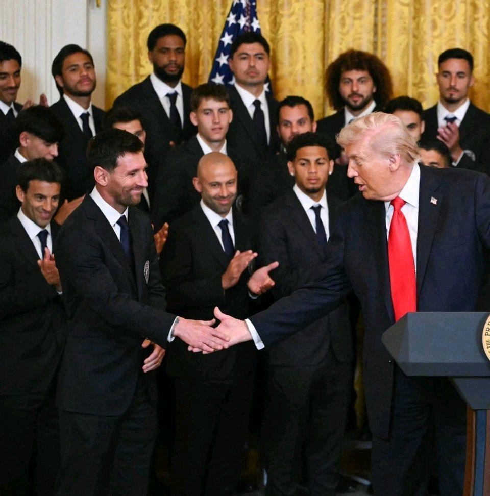 梅西白宫名场面! 特朗普当众喊话:我们只爱冠军、只爱胜利者。 当地时间3月5日,2025美职联冠军迈阿密国际造访白宫,38岁梅西率队接受特朗普接见,上演足坛历史性一刻。特朗普现场直言:我们喜欢冠军,我们喜欢胜利者,并说出历届总统未曾说过的话——欢迎莱昂内尔·梅西来到白宫。他透露儿子巴伦是梅西、C罗双料铁粉,梅西当场起身微笑回应。 数据亮眼:梅西2025赛季常规赛28场29球19助揽金靴+MVP,季后赛6场6球7助,率队首夺美职联冠军,斩获生涯第47冠。全队获赠47号纪念球衣,随后进入椭圆办公室合影,足坛顶流与政坛顶流同框,引爆全球热搜。