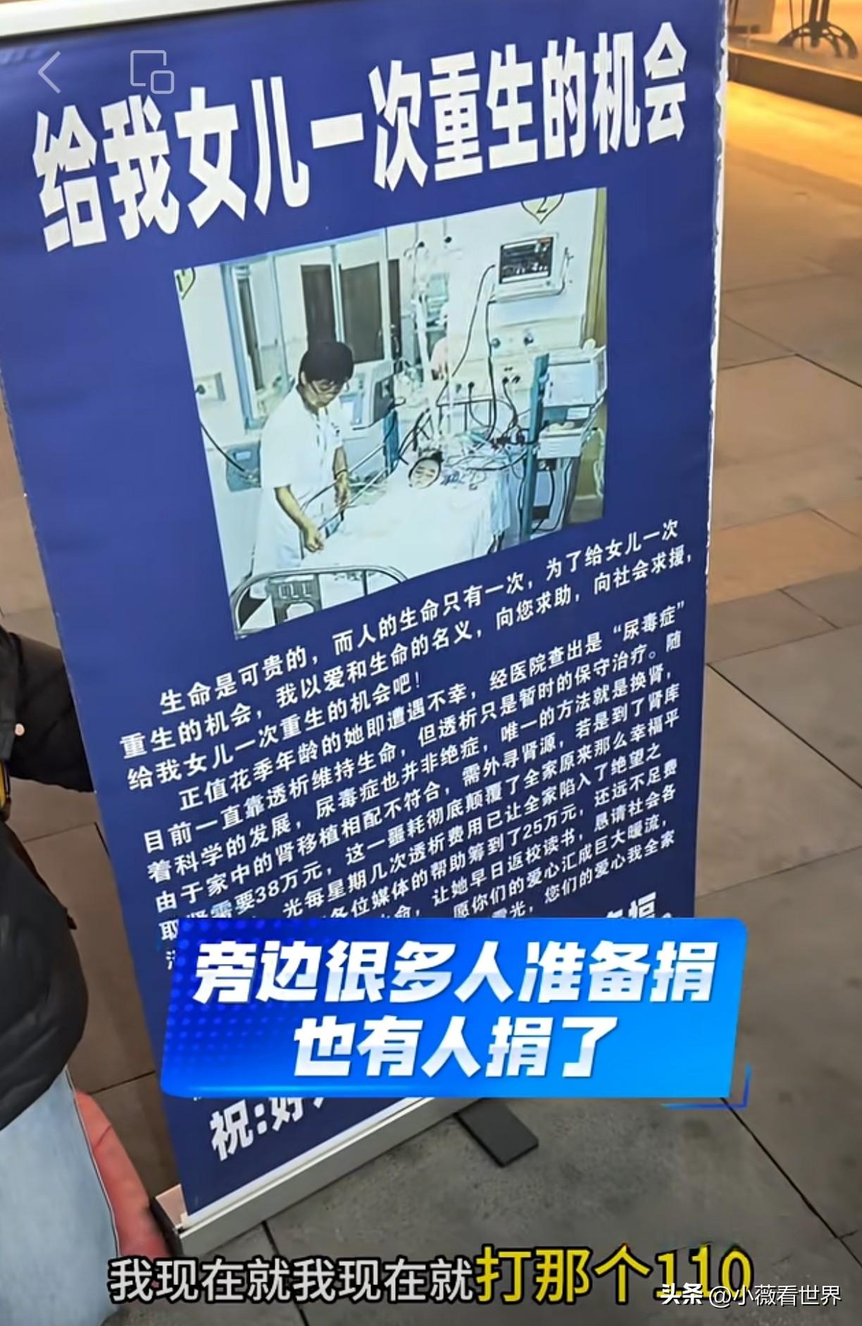这是发生在无锡惠山区的一件真实的事—— 有个小伙子发现街头有个大姐跪在地上,旁边有个大牌子,标题写着“给我女儿一次重生的机会”! 再看这块广告牌上的内容,大意就是正值花季的女儿患上了尿毒症,需要一大笔费用换肾,需要好心人伸出援手帮他们一把。 这个小伙子看到这个情况后,马上问有没有医院的证明材料,如果是真的,我马上捐500,如果是假的,我马上报警。 谁知这女的听到他的话,马上收拾东西准备走,要知道在此之前,已经有好多人捐了款。 所以这小伙子马上说,“别走别走!我已经报警了”,但那女的只当没听见,自顾自急着想走。 最后小伙子只能把她带到附近的警务站,向工作人员说明情况,希望警察进一步核实。 果真,后来派出所给小伙子打来电话,说这女的确实是骗子,是利用别人同情心,招摇撞骗。 不得不说这小伙子太棒了!我们对需要帮助的人伸出援手,是奉献爱心。但对于骗子,决不能让他们阴谋得逞。 可以说,像这种装可怜博同情骗钱的人大有人在。穿着校服的,甚至带着KTV设备唱歌的,其实说穿了都是骗钱。 最恨这些利用同情心骗钱的人,让真正需要帮助的人失去多少机会,因为人们知道上当了,遇到真需要帮助的人反而有戒备之心! 必须为这个富有正义感的小伙子点赞! 带定位晒今日生活 我的今日状态:震惊 我这里的天气:🌤️多云