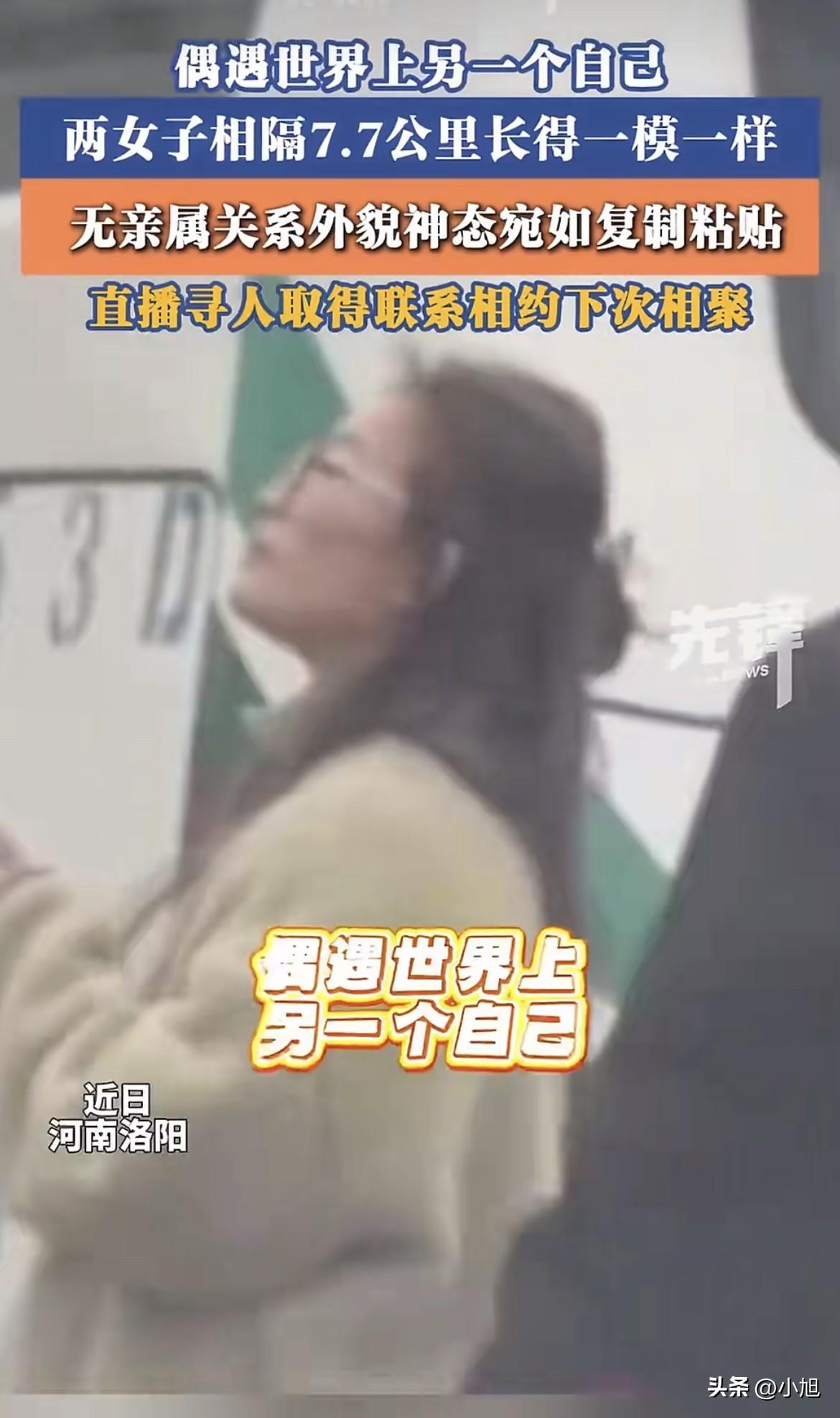这下彻底解释不清了! 河南洛阳的董女士,前几天开车在路上等红灯,旁边外甥女突然一声尖叫。 她顺着外甥女手指的方向看过去,车窗外一个女人正走过马路。 董女士瞬间头皮发麻——那张脸,那个身材,连走路的姿势,跟自己一模一样。 外甥女看看窗外,又回头看看坐在驾驶座的董女士,整个人都懵了。 要不是姨妈就坐在自己旁边,她绝对会冲下车去喊一声“姨妈”。 绿灯亮了,那个“另一个董女士”消失在人群里,车窗内外两个长得一模一样的人,就这么擦肩而过。 董女士回家后心里像猫抓一样难受。 她翻出行车记录仪,画面模糊得只能看见个人影,根本没法当线索。 这事搁一般人身上,感叹两句“世界真奇妙”也就过去了。 董女士偏不,她开了直播,把这段离奇经历讲了出来。 你猜怎么着? 就三天时间,真把人找着了! 找到人的那一刻,董女士反而有点紧张了。 视频接通,屏幕那头出现的脸,让她倒吸一口凉气。 就像在照镜子,但镜子里的自己会动会笑会说话。 两个人隔着屏幕对视了好一会儿,都不知道第一句话该说什么。 坐下来一聊,更神的事来了。 两人老家就隔了7.7公里,走路都用不了一小时。 以前经常赶同一个集,说不定早就擦肩而过无数次。 只是谁也没注意看对方的脸,更不会想到,人群里有个跟自己长得一模一样的人。 确认了三代家族关系,八竿子打不着,没有任何血缘关系。 被找到的这个姑娘更让人想不到,人家正在新加坡读博士。 一个在洛阳街头闲逛,一个在国外搞学问,命运就这么把两个毫无交集的人拉到一起。 两个人约定好了,等姑娘半年后回国,一定要见面好好聊聊。 这半年里,她们大概都会无数次想象,面对面坐在一起,看着“另一个自己”吃饭说话,到底是什么感觉。 这事在网上炸了锅。 有网友开玩笑说,让她们去做个亲子鉴定,说不定爷爷年轻时爱串门。 也有网友说,自己在街上遇到过一模一样的人,当时吓得没敢打招呼,现在后悔死了。 科学上这事还真有解释。 有研究说,跟面部特征相关的基因就那么几十种,排列组合多了,总有人能凑出一张相似的脸。 西班牙一个团队还发现,那些长得像但没有血缘关系的人,控制面部特征的基因变异往往是相同的。 可科学解释得清基因,解释不清7.7公里这个距离。 这么近的地方,住着一个“复制粘贴”的自己。 她们吃过同一家店的饭,走过同一条街的路,呼吸过同一片空气。 只是命运非要等她们准备好,才安排这场相遇。 世界上最奇妙的缘分,大概就是这样。 不用刻意寻找,不用精心安排。 就在一个普通的街角,在人来人往的午后。 悄悄发生,然后惊艳所有人。 你相信世界上有另一个自己吗? 如果有一天你在街上突然看见,会上去打招呼吗?