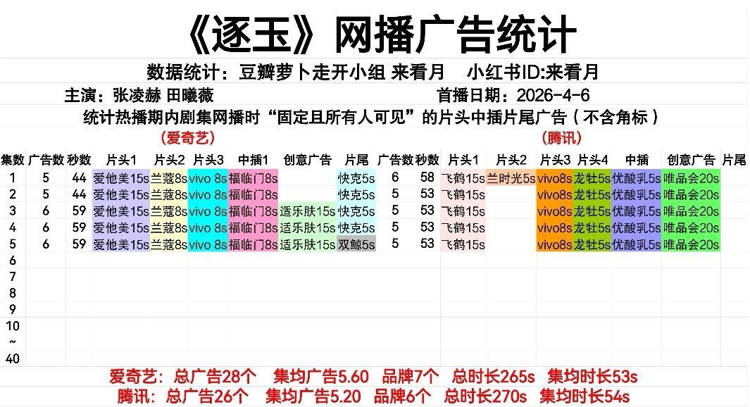 张凌赫和田曦薇的《逐玉》开局桃鹅共54广,总计13个品牌,大家看了这部戏的来反馈