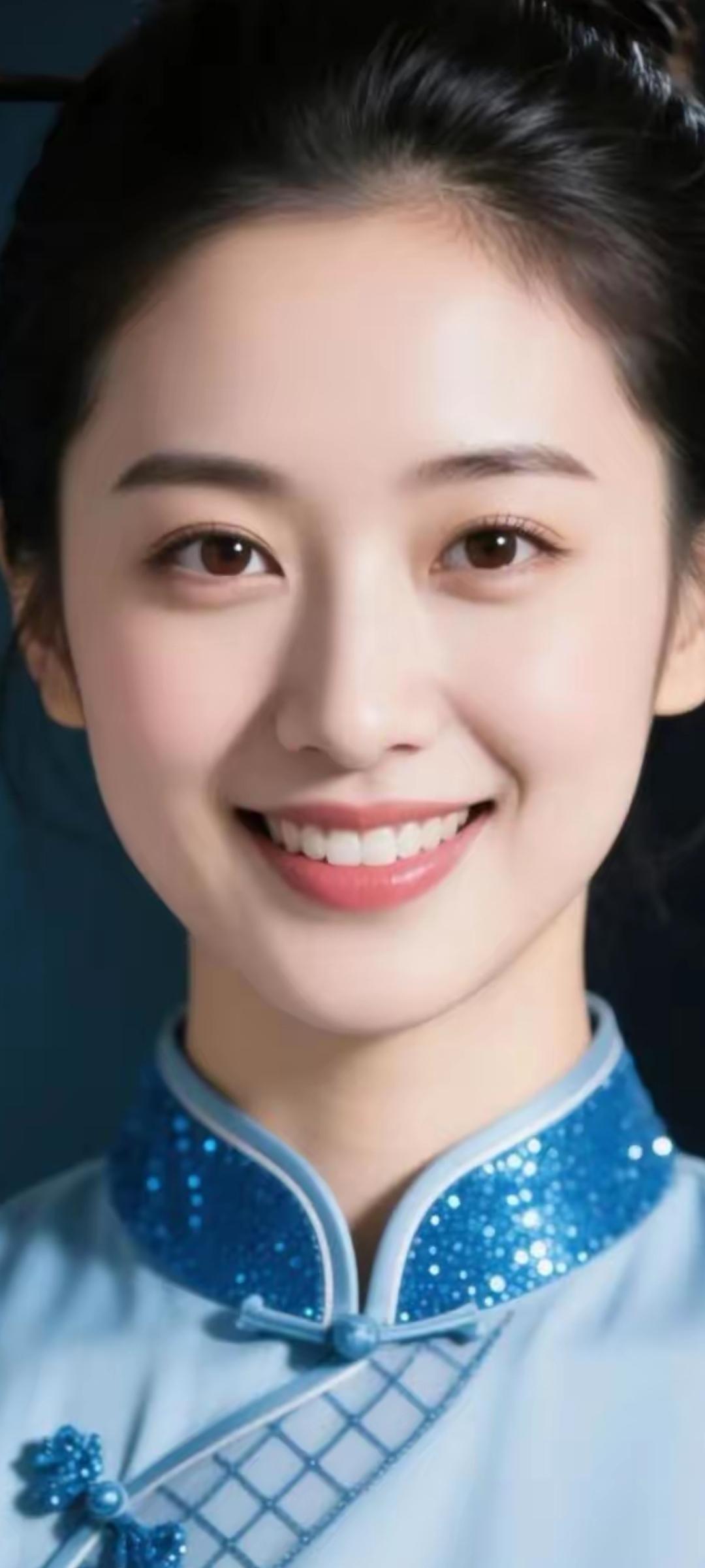 甜美笑容,蓝衣少女,青春洋溢!😊✨