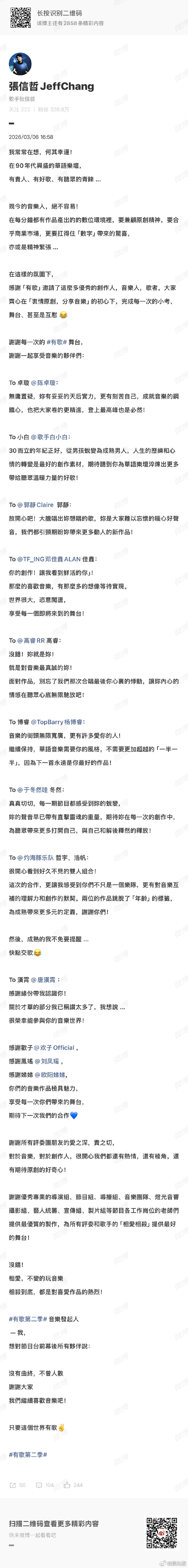张信哲对邓佳鑫全肯定 有歌第二季 有歌 邓佳鑫在有歌第二季 舞台持续进步,真挚情感打动听众,收官夜收获张信哲满满肯定,少年实力值得!
