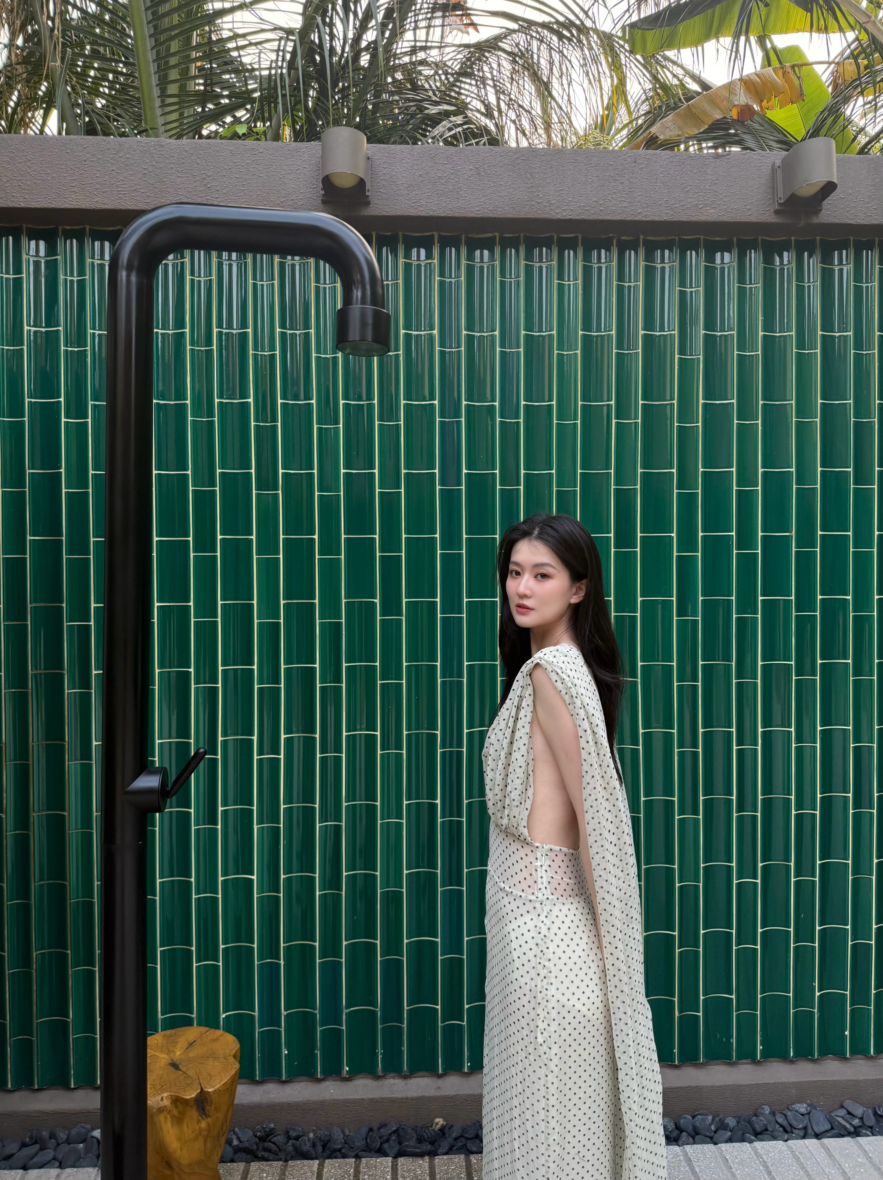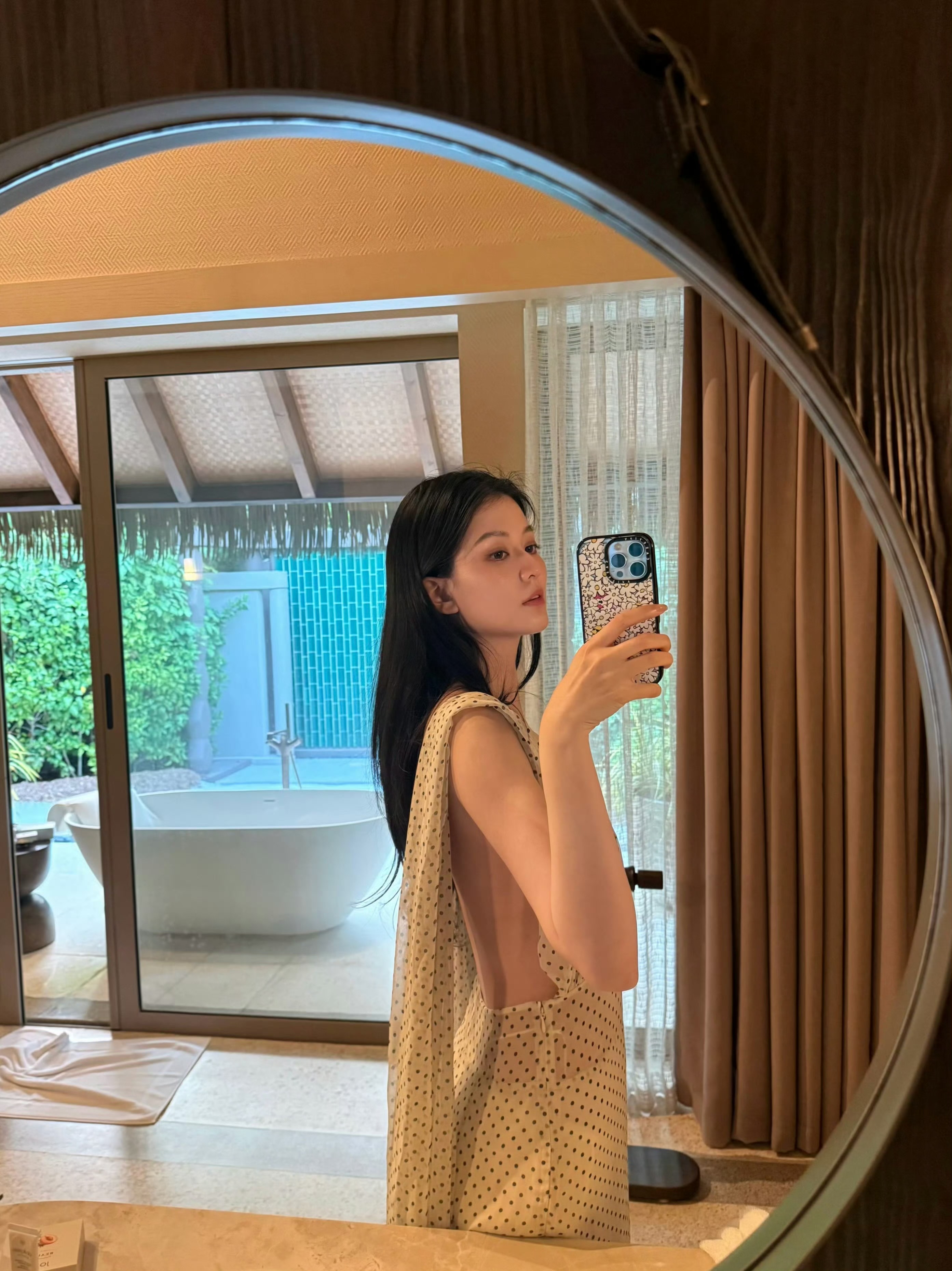 乔欣假期的快乐碎片 美丽度假照片掉落! 波点露背长裙自带法式浪漫,简约白T配黄条纹短裤又甜又元气好开心啊乔妹!假期愉快