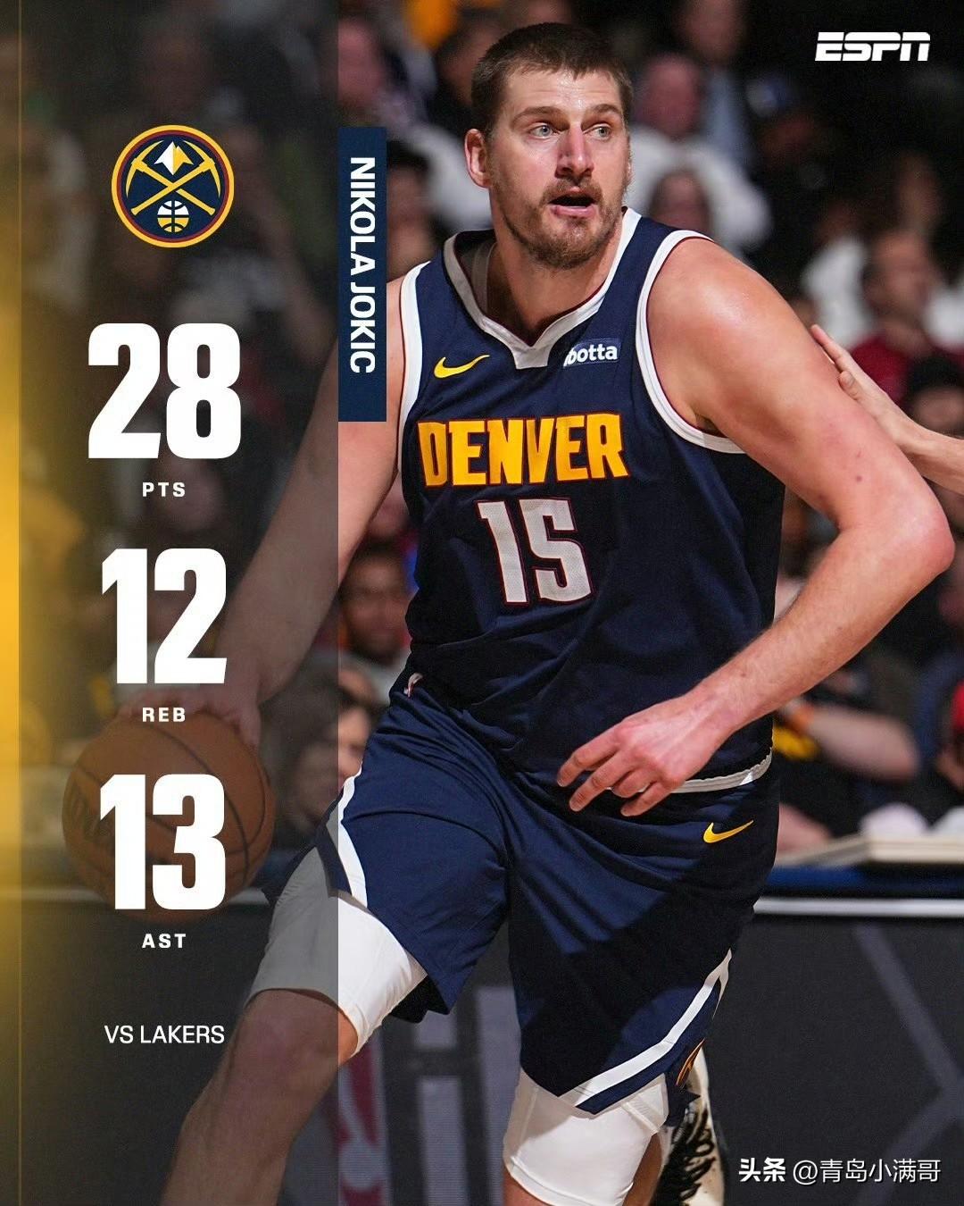 湖人真的打不过掘金!!! 湖人今天在客场以113-120不敌掘金队,在和老对手的直接对话中再次败下阵来,赛前湖人排名西部第六,掘金西部第五,0.5的胜场差让湖人看到了希望,而且湖人基本上全员健康,掘金主力前锋戈登还没有康复归队,所有优势都朝向湖人的一方,但是他们还是没能赢下比赛,湖人也不是没有机会,但在面对掘金的时候就像被血脉压制一般,没有人能够站出来,而且太容易做出错误的决策,当然这也不是第一次了吧。 湖人方面本场比赛只有东契奇一人得分上20,但是好在这次替补没有拉垮,尤其是八村很给力,海斯在艾顿不在的情况下也能够完成自己的使命,替补席只有他们两个正负值是正的,这也使得湖人的替补端没有输给掘金的替补。 掘金拥有双核约基奇和穆雷,两人都拿下了28分,约基奇也是常规三双,有了这两个球星的带动,掘金在赛场上明显更占优势。 在主教练方面,雷迪克还是略显稚嫩,明显到了关键时刻应变能力太差,一通胡乱操作将比赛拱手相让,湖人曾将比分追到了只差一分,但是那个时候还是不应该下八村,不交易八村将他留下就要大胆的使用,他的篮子还是真的很稳定。至于什么拉拉维亚的就算了吧,到了季后赛更指望不上。湖人 掘金 东契奇 詹姆斯