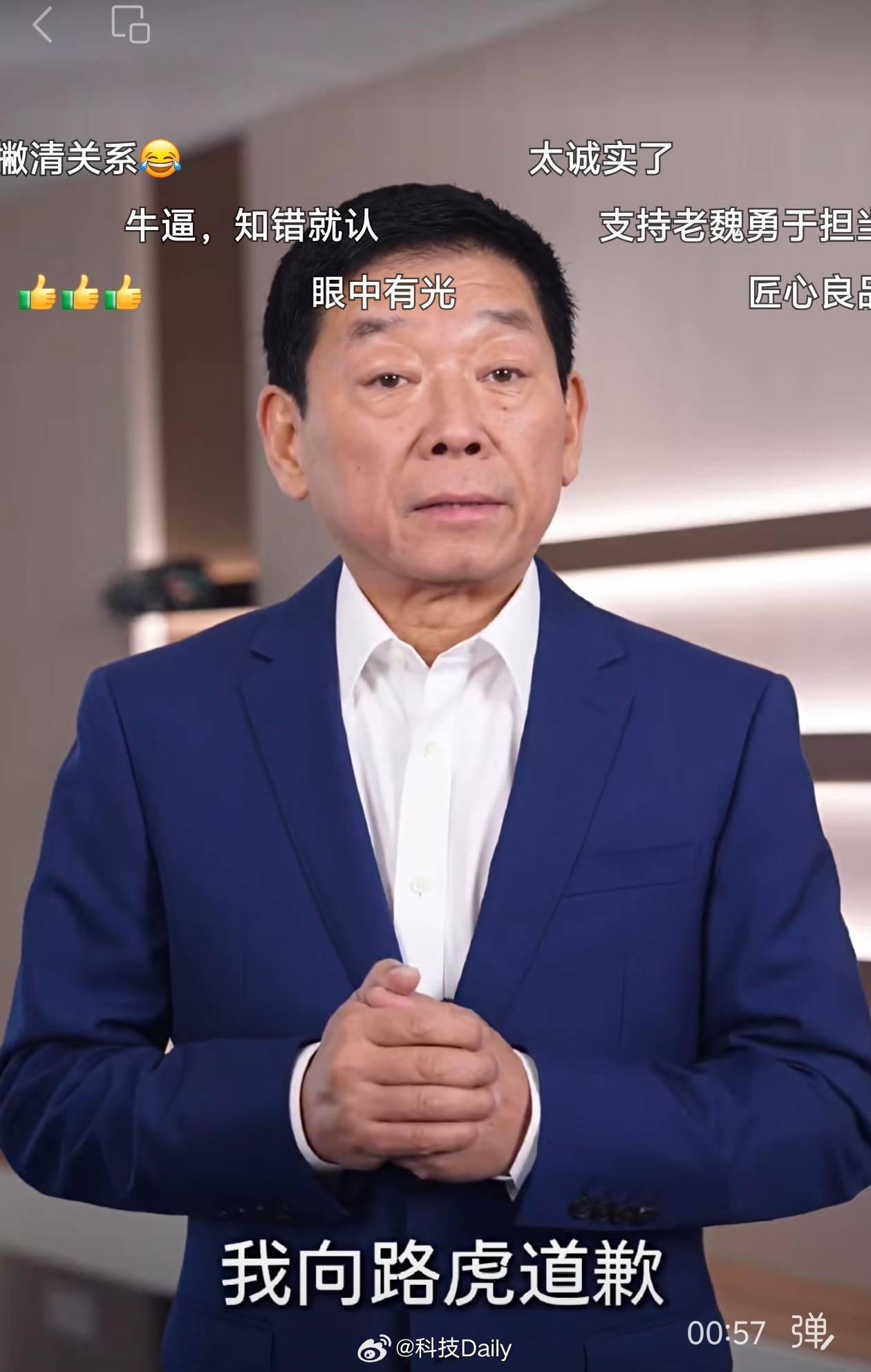魏建军就海报抄袭事件道歉 代言人有担当,不选择冷处理而是直接面对,说实在话。魏建军这代言人当的靠谱,发现问题解决问题,风格一样就去验证情况,发现类似就主动承认错误。网友评论:眼里有光,燕赵英雄。用行动表达,是最大的诚意。