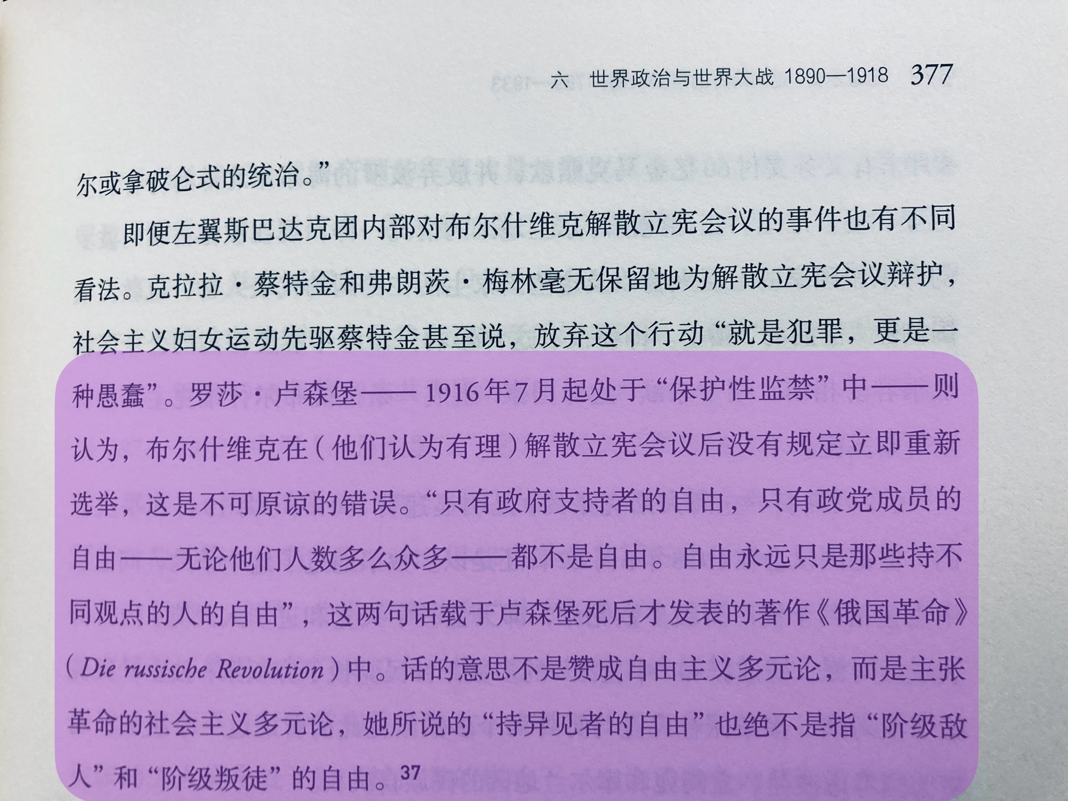 罗莎•罗森堡定义的是“人民”内部享有的自由,专政对象没有自由可言