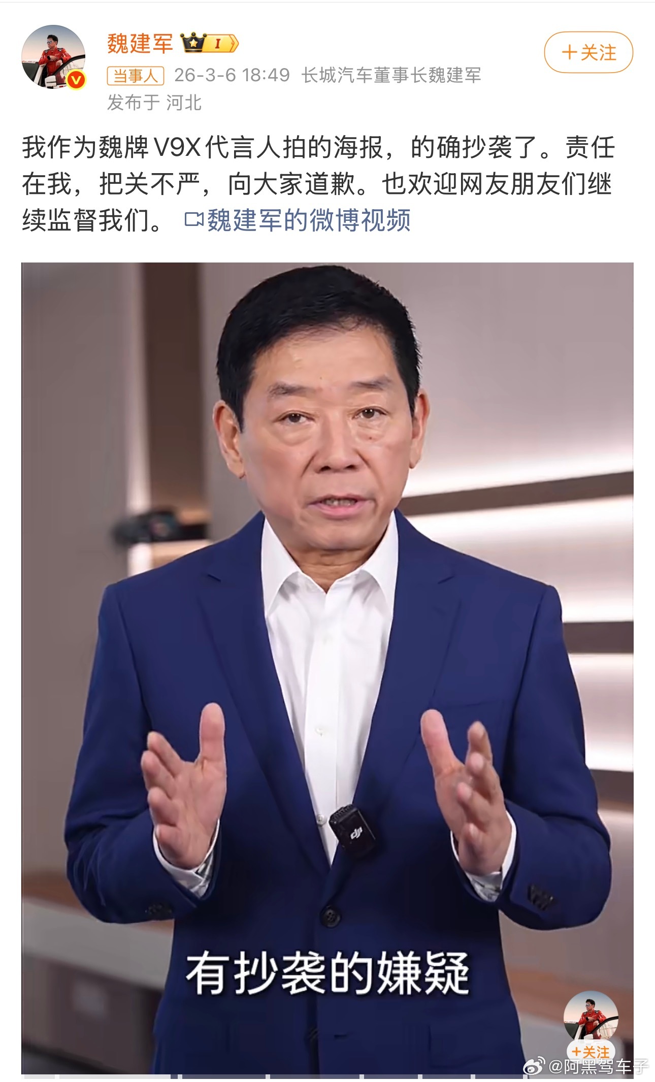 魏建军认得还是很干脆啊,比咬死不认嘴硬是致敬强点魏建军就海报抄袭道歉
