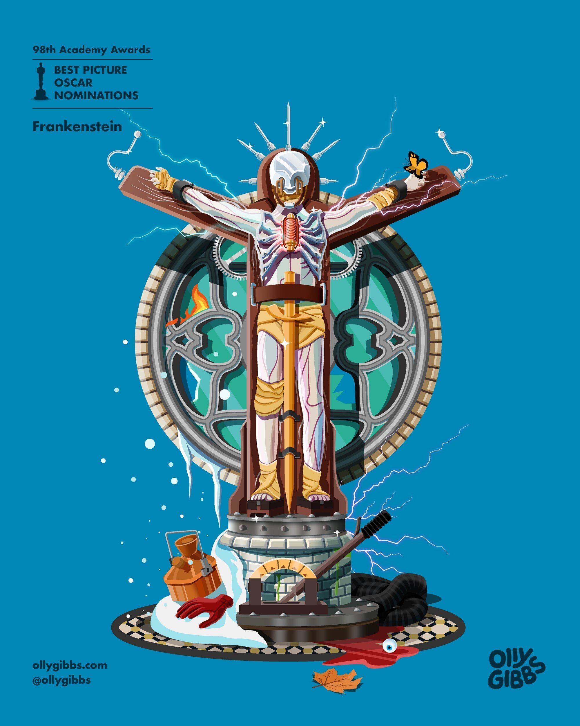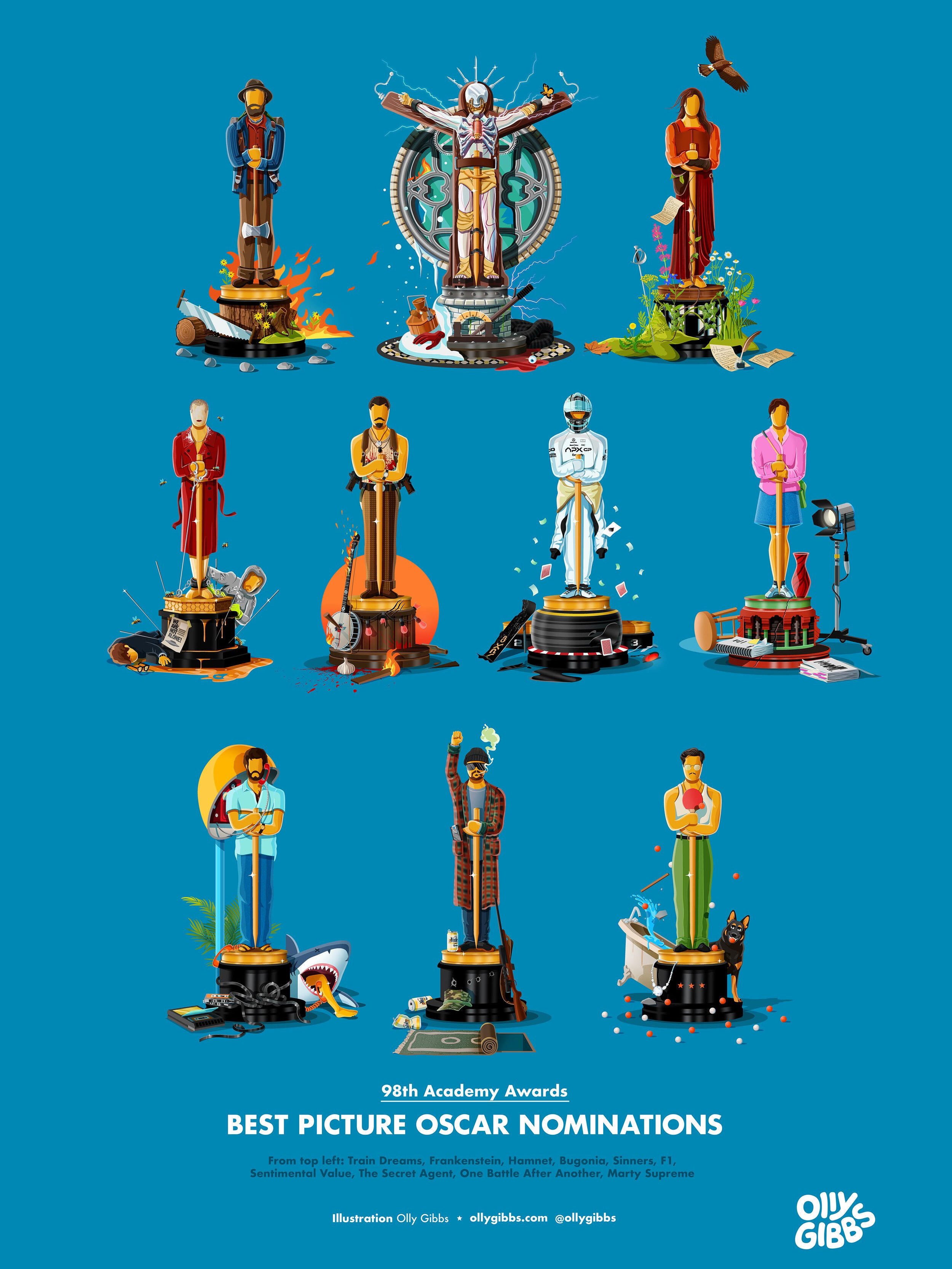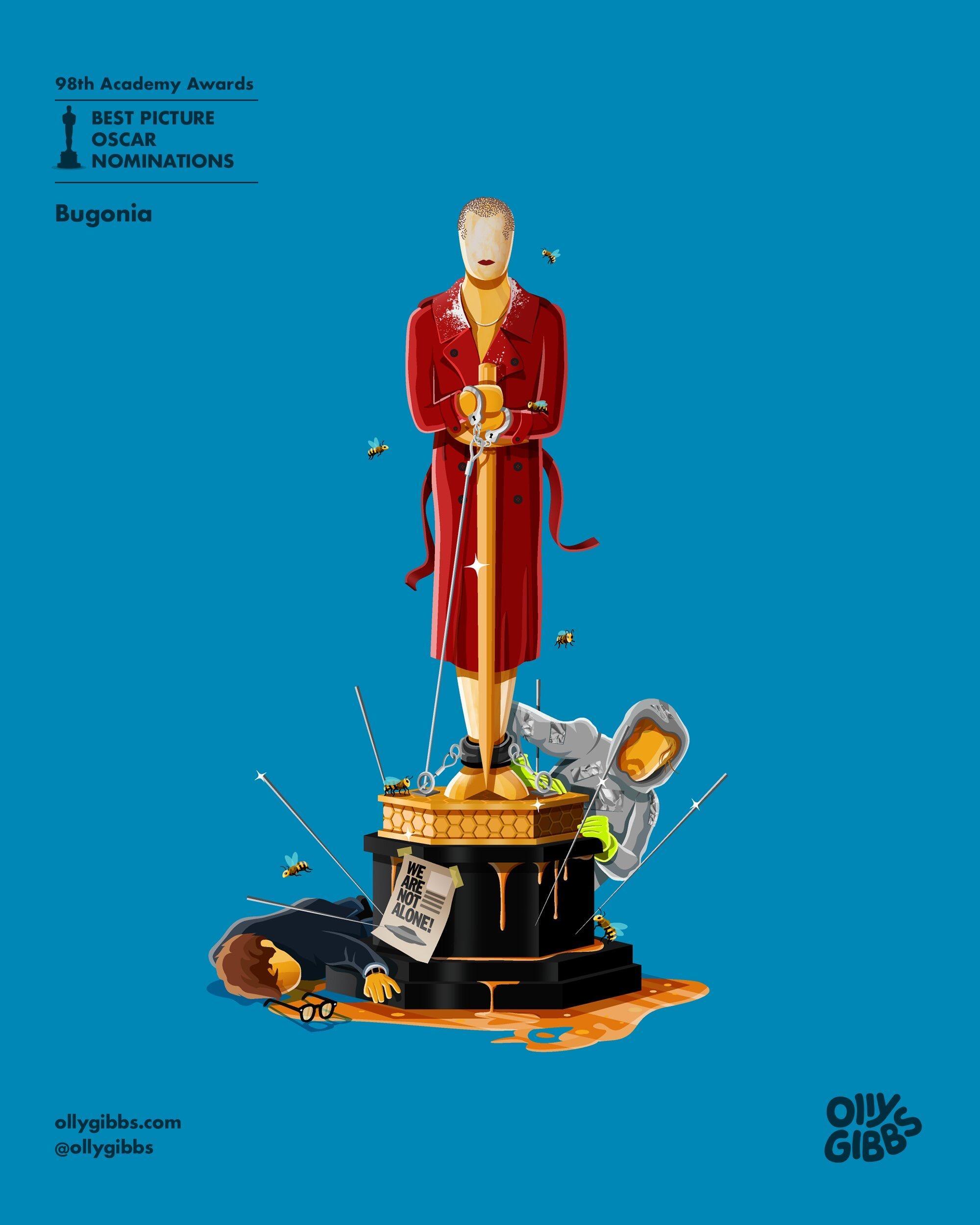 Olly Gibbs今年例行为第98届奥斯卡提名最佳影片的十部作品,创作了主题奖座艺术海报。🏆