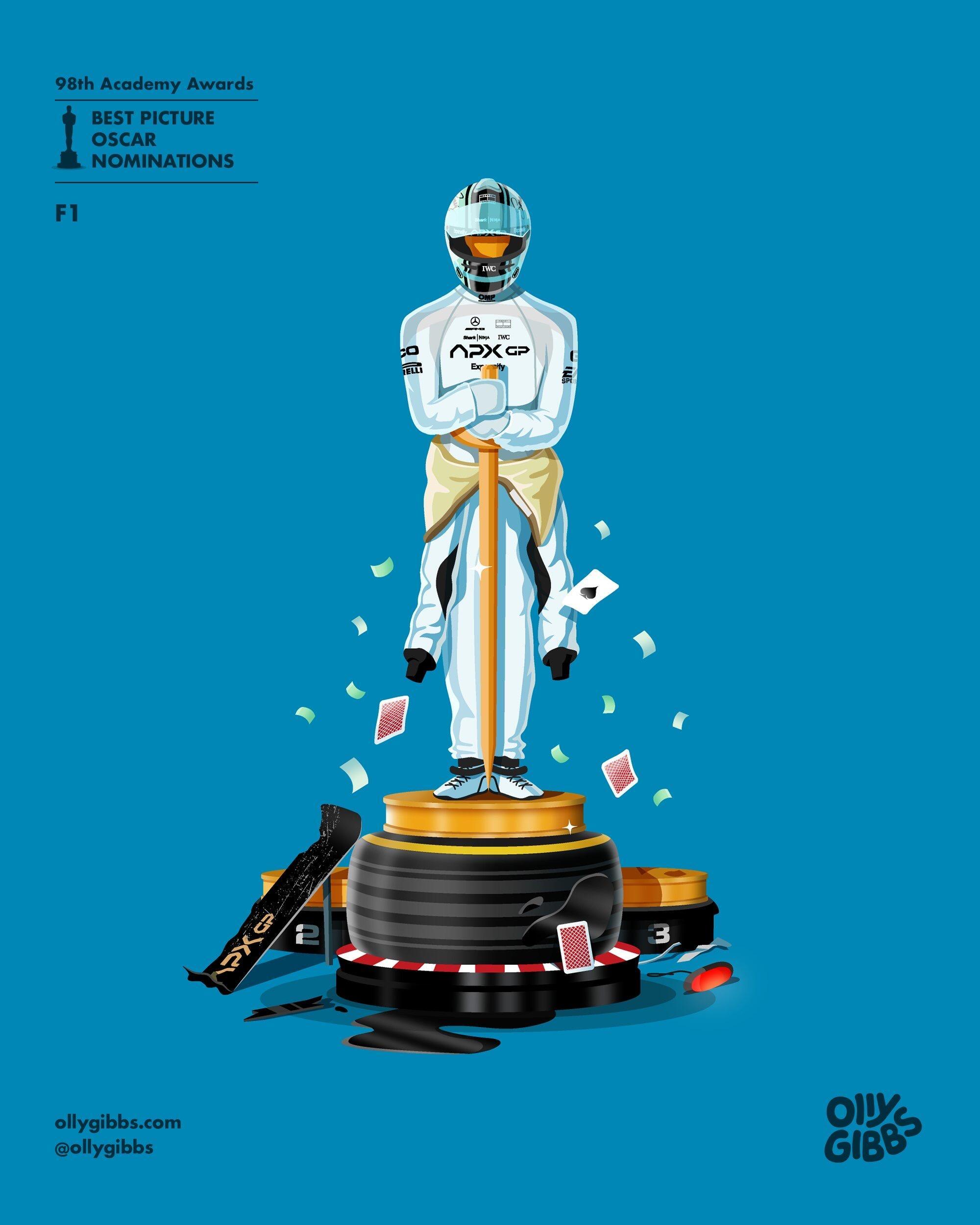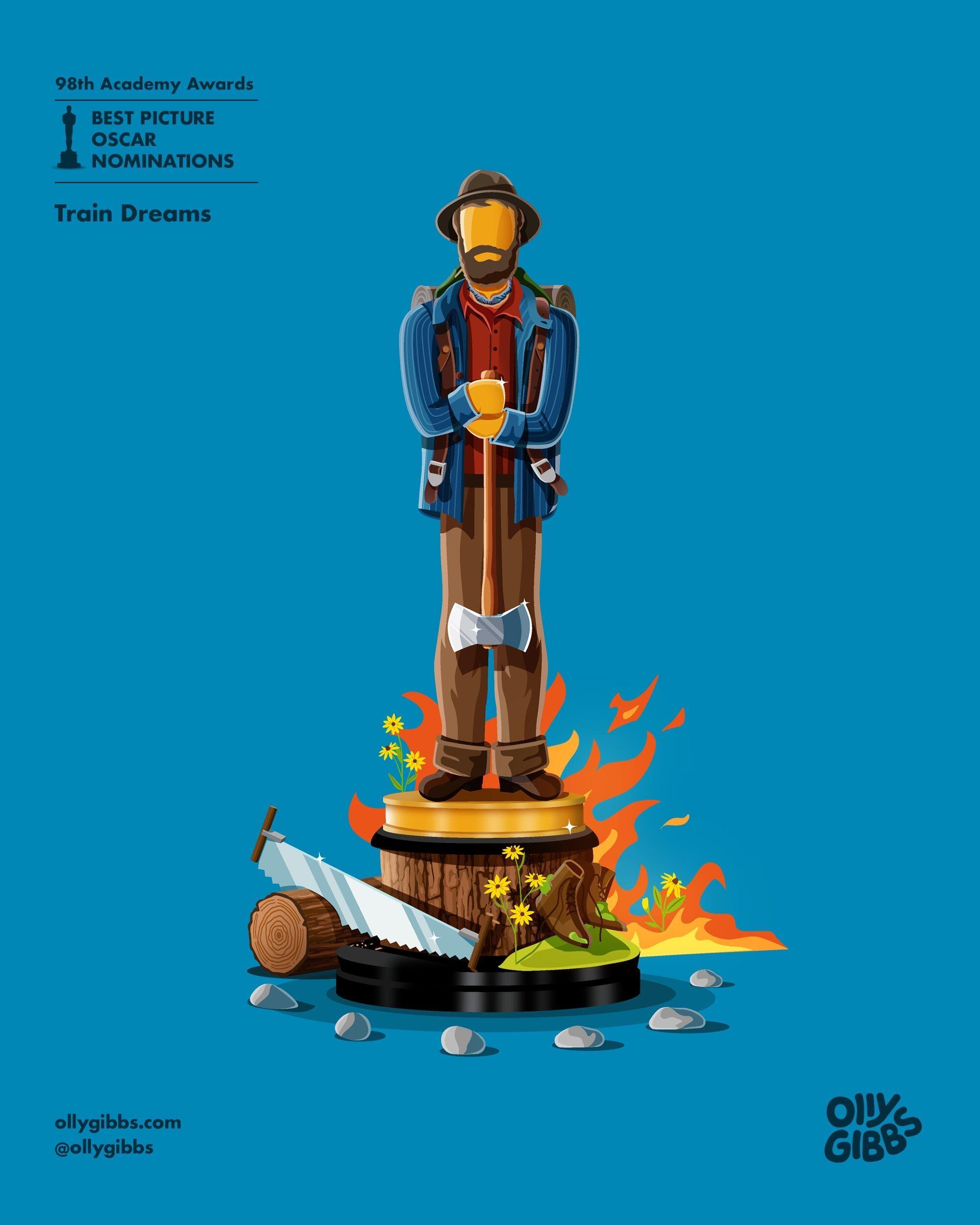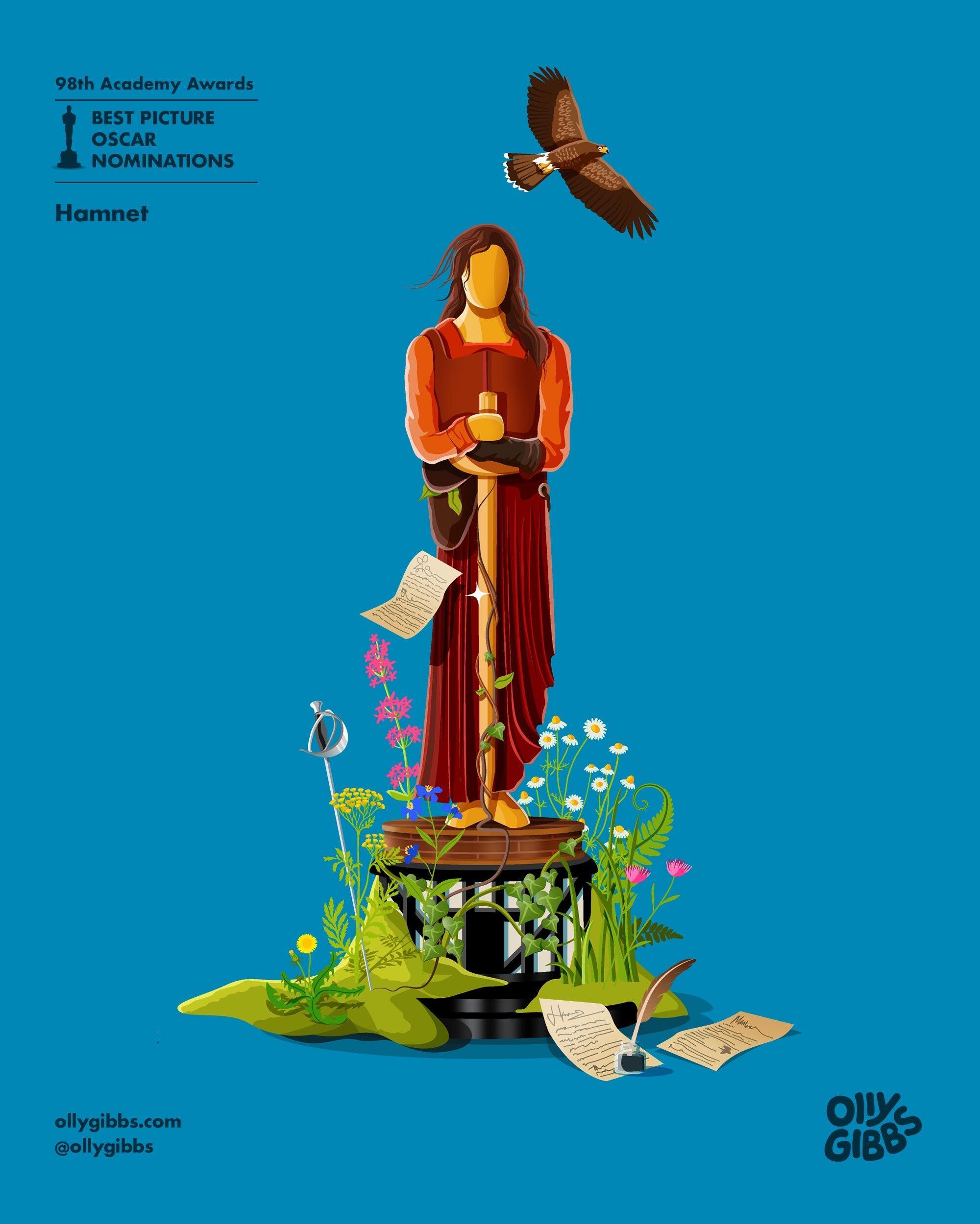 Olly Gibbs今年例行为第98届奥斯卡提名最佳影片的十部作品,创作了主题奖座艺术海报。🏆
