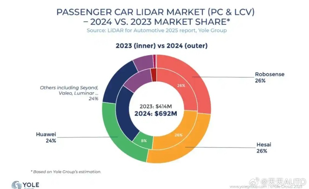 目前,全球市场,能生产、制造激光雷达的企业有很多,比如说法雷奥192线激光雷达、Luminar Iris为128线激光雷达。但从表现力来看,还是国内企业打造的激光雷达更为出彩,目前主流的中国市场激光雷达已经全面突破128线。华为激光雷达目前的出货量最大,以192线居多,24、25年,全球市场的激光雷达出货量,前五分别为:速腾聚创占比为26%、禾赛科技占比为22.8%、华为占比为21.1%、图达通占比为13%、Luminar Iris占比不足5%。前三家企业的出货量差距不大,而且几乎以“撕裂”的市场格局,全面领跑市场,导致这一现象发生的核心根本,源于中国市场快速崛起的电动汽车科技。速腾聚创、禾赛科技为专注激光雷达的企业,但华为的激光雷达,只是其技术版图中的一个布局。国内市场,华为比较特殊,或者说华为以一个完整产业链生态的方式,出现在了企业以及消费者面前。目前,华为有一整套的驾驶辅助系统方案给到车企,包括但不限于激光雷达、驾驶辅助方案、数据库、算法,统称为“华为乾崑智驾”,简称华为ADS。华为ADS可以单独出售给车企,比如说Hi模式,也就是Huawei Inside,这种模式很多车企都在用,比如说广汽传祺、岚图、猛士等。同时,华为也有自己组建的“矩阵联盟”,也就是我们熟知的鸿蒙智行,AITO、智界、享界、尚界以及尊界。
