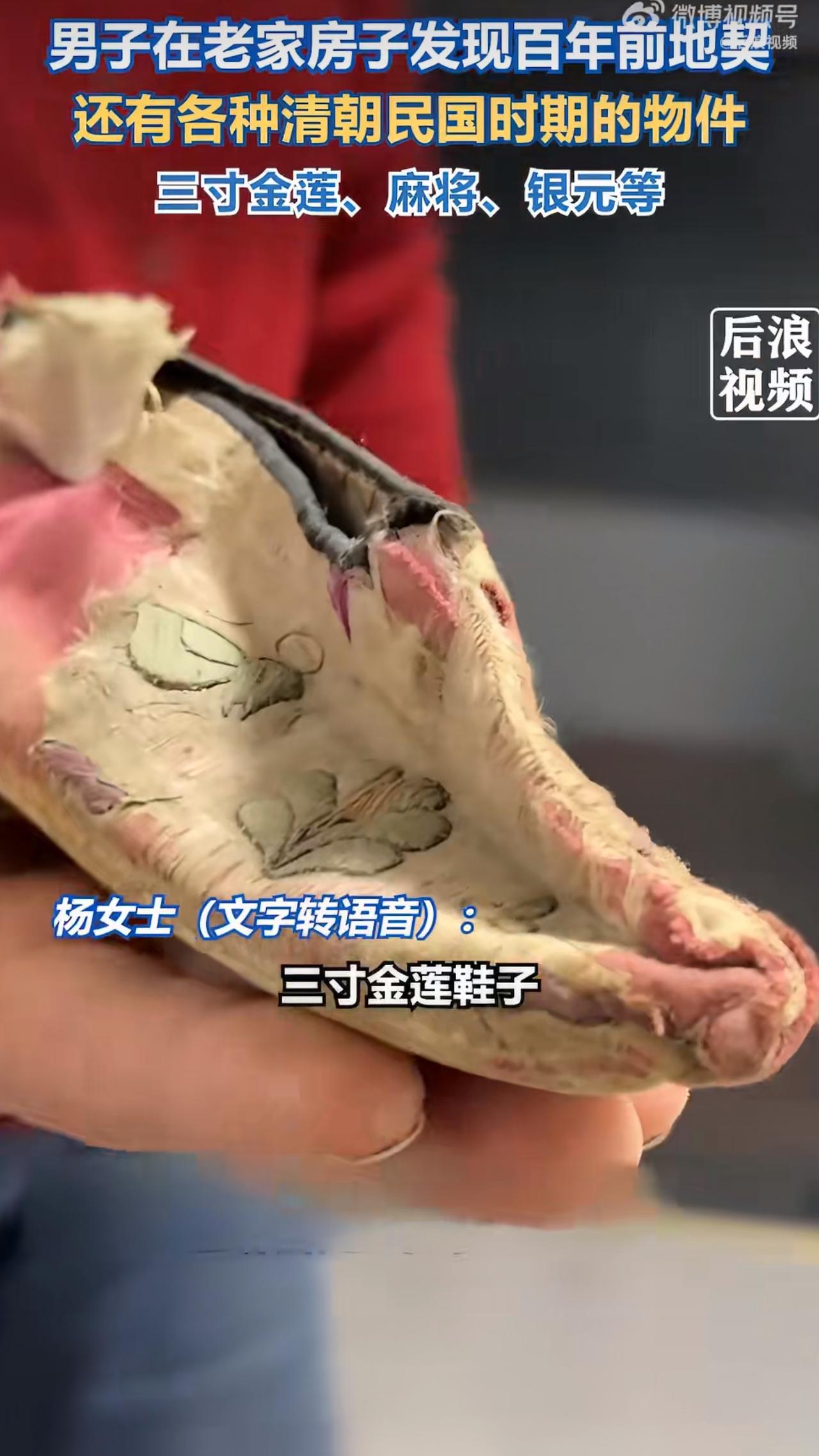 安徽淮南一位杨女士在老家收拾东西时,意外翻出一个老式木盒,打开一看,里面竟藏着十几张清朝到民国时期的地契,连带着还有一双保存完好的三寸金莲鞋,这发现可把她和家人都惊着了。 杨女士说,那天她回老家整理旧物,在阁楼角落里发现这个落满灰尘的木盒,盒子看着挺有年头,锁扣都生锈了,她费了点劲才打开,最先映入眼帘的是一沞泛黄的纸,仔细一看,竟全是地契,从同治年间到民国时期,跨度近百年,每张地契上都详细记录着土地的位置、面积、买卖双方的信息,有些字迹已经模糊,但关键内容还能辨认,比如“光绪十年”“宣统三年”这些年份,让人一下子就穿越回了那个年代。 更让人意外的是,盒子的抽屉里还放着一双三寸金莲鞋。这双鞋用绸缎缝制,鞋面上绣着精致的花纹,鞋头尖尖的,只有巴掌大,看着就让人心疼,杨女士说,这鞋应该是她老公太奶奶往上几辈的长辈留下的,算下来至少有一百多年历史了,以前只在老照片里见过裹小脚的老人,没想到今天能亲眼见到实物,这种震撼感真是难以形容。 除了地契和金莲鞋,盒子里还有不少其他老物件,比如铜钱、玉佩、旧信件,甚至还有一块清末的怀表,表盖上的花纹都磨得发亮了,杨女士的老公特别喜欢收藏老东西,看到这些宝贝简直乐开了花,小心翼翼地把它们包好,带回家里专门找了个玻璃柜收起来,他说,这些地契不仅是家族历史的见证,更是那个时代社会经济的缩影,比如有些地契上写着“因灾荒卖地”,能看出当时老百姓生活的艰难。 说起三寸金莲鞋,杨女士的老公还特意查了资料,原来,裹小脚是从宋朝开始流行的陋习,女性从小就要用布条把脚缠得小小的,认为这样才美,可实际上,这种做法严重伤害了女性的身体,很多人因此落下残疾,连走路都困难,这双鞋能保存到现在,既是历史的见证,也让人反思过去那些不合理的传统。 现在,杨女士一家经常围在一起看这些老物件,老公还会给孩子们讲地契上的故事,比如“这张是光绪年间买的五亩地,当时用银元交易”“那张是民国时分的家产,兄弟几个各得一份”,孩子们听得津津有味,连邻居们听说后也跑来参观,大家都说,这些老东西比博物馆里的展品更亲切,因为它们就来自身边,带着生活的温度。 有人说,现在老房子拆迁时经常能翻出这种宝贝,可惜很多人不懂价值,直接当废纸扔了,也有人感慨,这些地契和金莲鞋就像时光胶囊,把过去的岁月都封存起来了,看着它们,就能想象出先辈们的生活场景,对杨女士一家来说,这次意外发现不仅收获了宝贝,更让他们对家族历史有了更深的了解,这种传承的感觉,大概就是老物件最珍贵的意义吧。老式文物 祖传地契 绝版地契 女子翻老盒子内藏十几张清朝地契 事件来源:后浪视频