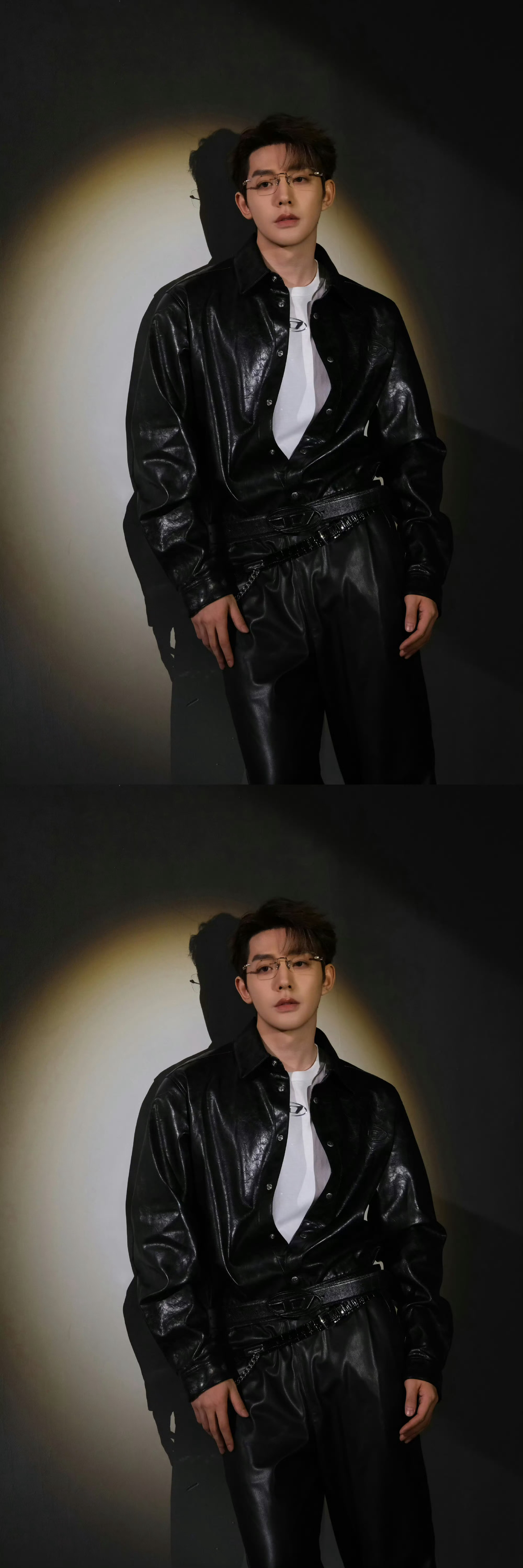 邓为皮衣套装邓为这张建模脸搭配皮衣套装,真的是帅的太有格调,在光影的画面之中,