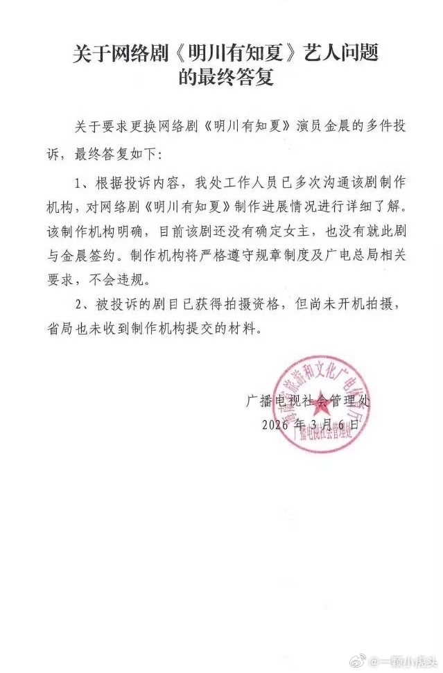 黄景瑜粉丝有点东西,广电回复关于金晨新剧《明川有知夏》情况!还是第一次看见这种投诉有文件回应的。