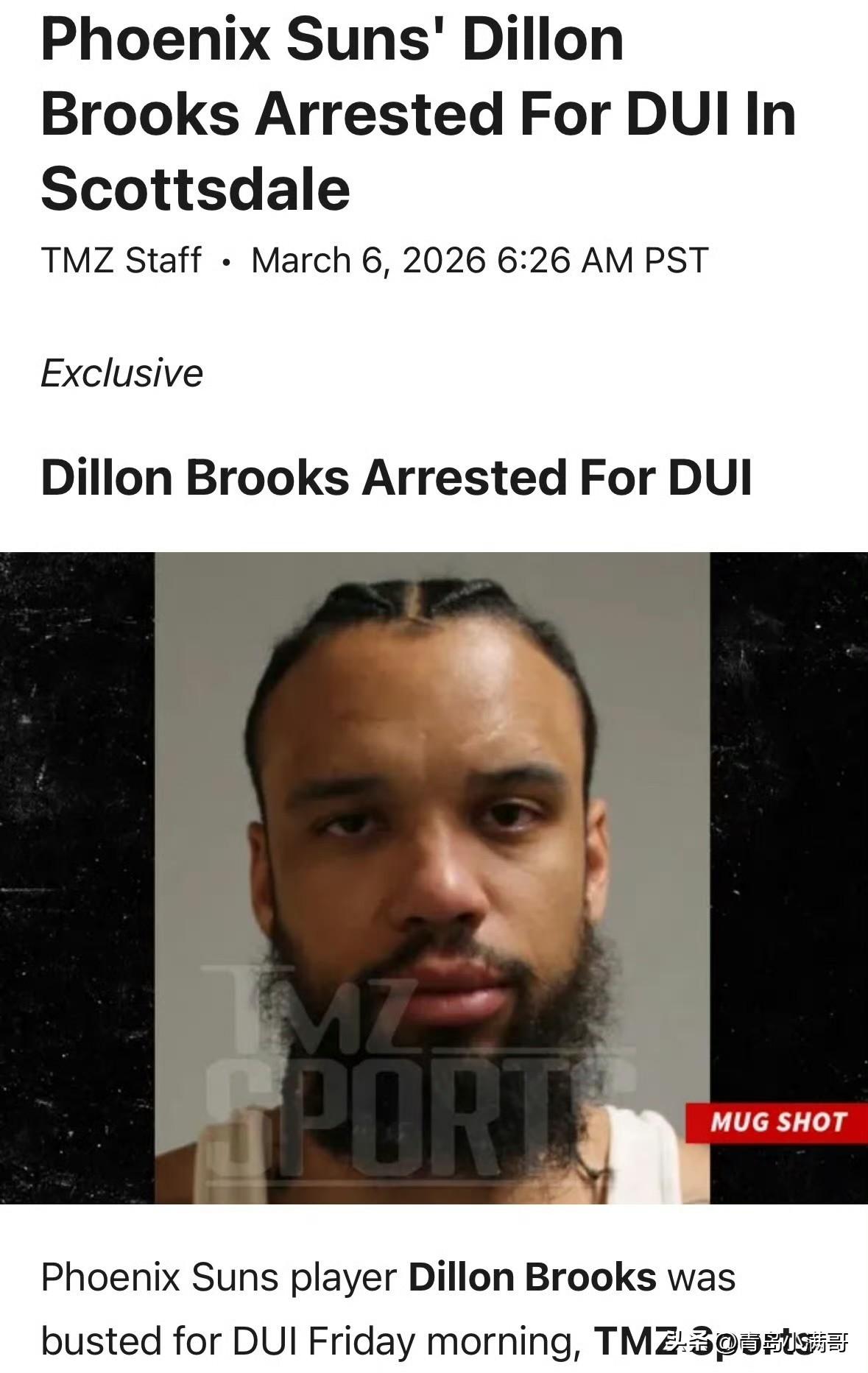 狄龙-布鲁克斯,因酒驾被捕!!! 根据外媒TMZ最新消息透露,太阳队球员狄龙-布鲁克斯在当地时间周五清晨因酒驾被捕。 这个狄龙好用是好用,就是场内场外都不消停啊! 该媒体表示,我们从有关部门获悉,,狄龙-布鲁克斯于当地凌晨2点左右在斯科茨代尔被逮捕了,并在凌晨3点20分左右被保释释放。 这效率还挺快的,一个多小时就出来了,估计又交了不少的保释金吧!豪华混动MPV进入19万时代 太阳队 菲尼克斯太阳队