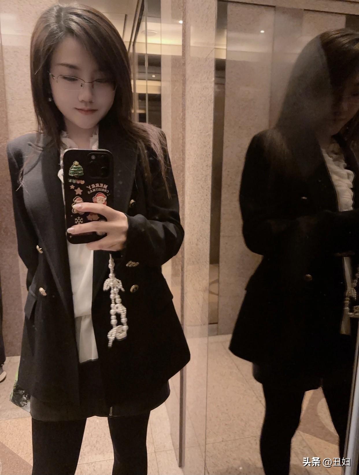好看又舒适的穿搭优雅粉黑撞色套装,尽显都市女性魅力!