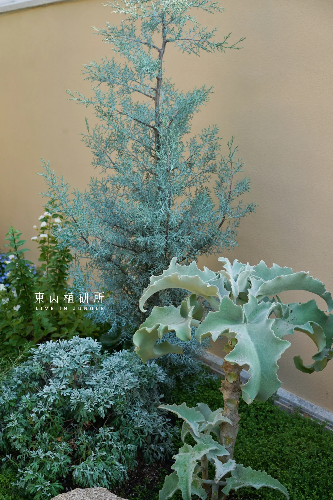 一组以银灰色调为核心的植物搭配 🍃蓝冰柏 圆锥形树形,霜蓝色叶片,撑起花境垂直结构,自带清冷感。 🍃仙女之舞 独特的波浪状叶片,粗犷的质感平衡蓝冰柏的细腻,增添热带野趣,耐旱耐晒。 🍃芙蓉菊 银灰色叶片形成柔和底色,中和过渡整体色调。 🍃白色绣球 大团洁白花簇点亮画面,纯净治愈。 银灰色系的植物在自然光线下呈现细腻的质感,适合现代简约、自然野趣的庭院,营造夏日清冷氛围。 ——————