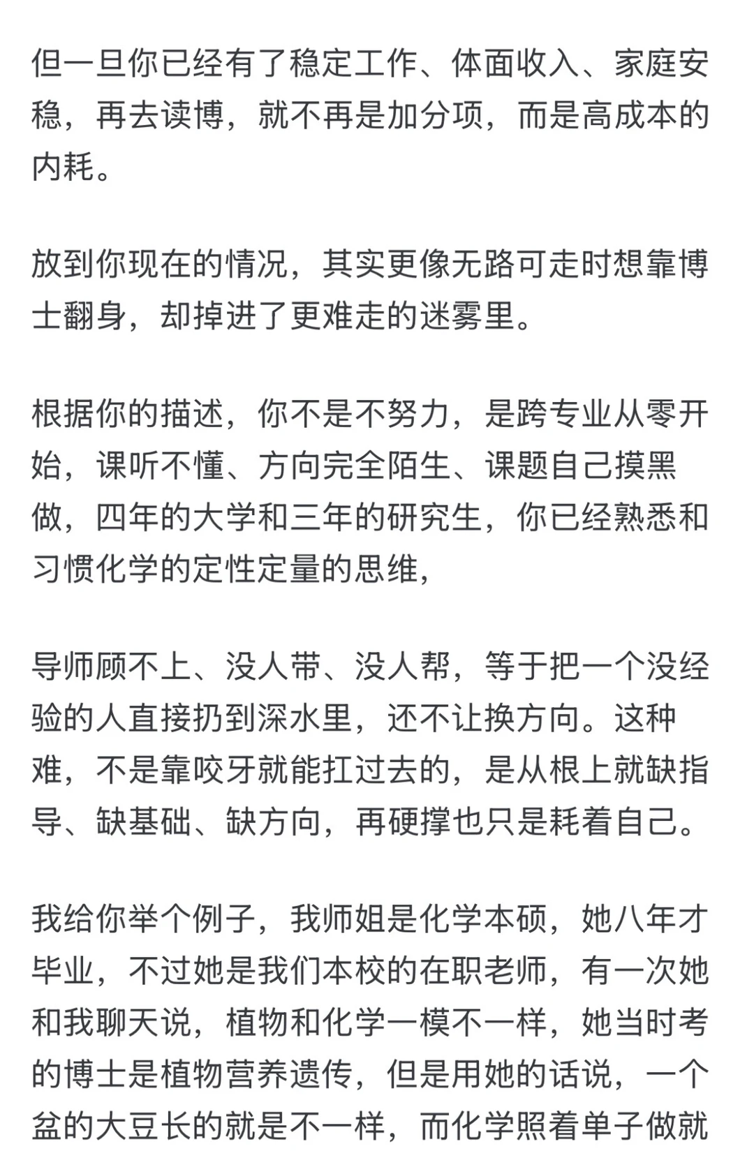 读博的意义,是让你往上走,不是让你往下沉。 如果它只带给你痛苦、压抑、看不到希望,那它就不是台阶,是泥潭。 我前几天回答类似的问题是这样说的, 呃,在没出路的时候,读博是最好的出路, 在有稳定工作时候,不建议读博, 没路走的时候,博士是兜底的台阶(也不是说读就能读),是换赛道、改身份、跳阶层最稳妥的一张牌。 它能给你一段缓冲期,让你在学历、视野、资源上完成一次硬升级, 哪怕前路再迷茫,把书挣上去,总能多几条路走。