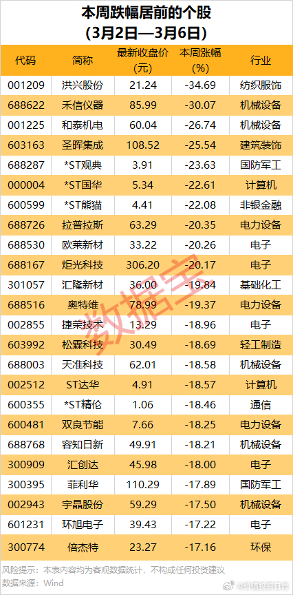 价值投资日志 本周累计下跌的个股中,302股跌幅在10%以上,洪兴股份一周累计跌34.69%,居首;禾信仪器、和泰机电、圣晖集成等累计跌幅均超25%。 长沙·汤家大屋