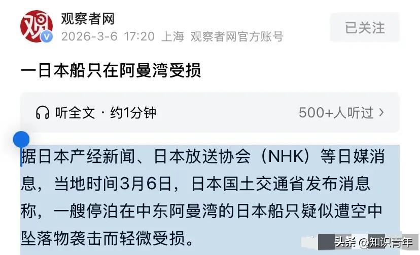 日本油轮被炸,日本人被捕,高市出兵伊朗的机会来了 中东冲突爆发之后,无论是高市早苗,还是日本政府都义无反顾的站到了美国那一边。指责伊朗拥有核武器,并且喊话伊朗停止攻击周边国家。 油轮遇袭、国民被抓,这套剧本对日本右翼政客来说,简直是天上掉下来的“神风”。他们等这样的借口等了太久了。高市早苗们表面上喊的是“保护国民安全”、“维护航行自由”,心里盘算的却是另一本账:能不能借着这个由头,把自卫队的军舰堂而皇之地派到波斯湾,甚至更进一步,突破战后那道最大的枷锁——和平宪法第九条。对他们而言,国民安危是旗子,美国态度是梯子,最终目标是把日本重新变成一个“能打仗的正常国家”。 但这条路,布满了国内外的荆棘。日本国内不是铁板一块。宪法第九条“放弃战争”的规定,是刻在战后日本国家认同里的基石。尽管这些年防卫预算一路飙升,“专守防卫”的内涵被不断掏空,可真要派兵到万里之外参与一场热战,引发的国内震荡将是空前的。在野党会拼命阻击,反战民众会上街游行,法律界会提起违宪诉讼。高市早苗所在的派系能量再大,也很难一手遮天。更现实的是,日本自卫队长期在“和平宪法”的温室里长大,缺乏海外实战经验,后勤补给线拉长到中东,弱点会暴露无遗。派几艘船去护航也许能做到,真卷入与伊朗的正面冲突,自卫队那点家底够打几天?这是个巨大的问号。 抛开政治野心,单从国家利益看,出兵伊朗也是个昏招。日本是个资源穷国,绝大部分石油天然气都得从中东进口,霍尔木兹海峡就是它的生命线。现在这条生命线旁边站着伊朗。你派兵去威胁伊朗,等于亲手把自己的能源命脉放到火上烤。伊朗不需要击沉你的军舰,它只需要暗示一下“可能影响对日航运”,或者让亲伊的武装力量“不小心”骚扰几艘日本油轮,就足以让日本的能源价格和股市崩盘。用军事手段去保卫一个靠商业合同和地缘平衡维系的安全,无异于抱薪救火。那些喊着出兵的政客,恐怕没算明白这笔经济账。 美国的态度更是关键。日本右翼总觉得紧跟美国就能分一杯羹,实现军事松绑。可美国从来不是慈善家。它现在需要日本在亚太围堵中国,所以对日本增强军力睁一只眼闭一只眼。但在中东,美国自己都深陷泥潭,它会真心支持日本派兵来“抢戏”吗?大概率不会。美国更可能把日本当枪使,让自卫队去干一些巡逻、护航的脏活累活,承担风险,而真正的战略决策和战后利益分配,东京依然说不上话。搞不好,日本就成了美国中东战略的“廉价炮灰”,出了力,惹了仇,最后什么也捞不着。 高市早苗们看到的“机会”,其实是一个布满陷阱的赌局。赢了,或许能在国内政治上加分,向“国家正常化”挪一小步;输了,就是赔上日本的经济安全、地区稳定,甚至可能把整个国家拖入一场无法控制的冲突。战后几十年,日本享受和平红利,靠的不是航母和远征军,而是精巧的经济外交和“吉田茂路线”的务实主义。现在有人想扔掉这个成功的工具箱,换上生锈的武士刀,去一个远离本土、错综复杂的战场冒险,这不仅是战略短视,更是对国民未来的极端不负责任。油轮被炸是悲剧,但更悲剧的是,有人想利用国民的伤痛,去实现自己危险的政治幻想。 各位读者你们怎么看?欢迎在评论区讨论。