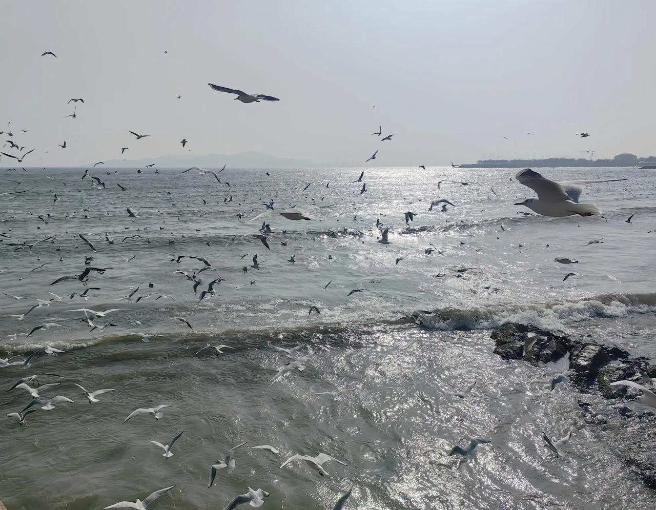 青岛的栈桥,是冬日与早春之际海鸥最为眷恋的港湾。那些从西伯利亚远道而来的精灵,身披皎洁白羽,红喙轻触碧波,翅尖划开海风。 回澜阁的飞檐之下,群鸥盘旋啼鸣,时而俯冲接住游人抛撒的鸥粮,时而静立在礁石上梳理羽毛。以碧海蓝天为底色,以百年长堤为线条,这些灵动的白色身影,将青岛的冬天与早春,绘成了一帧帧温柔且鲜活的画面。