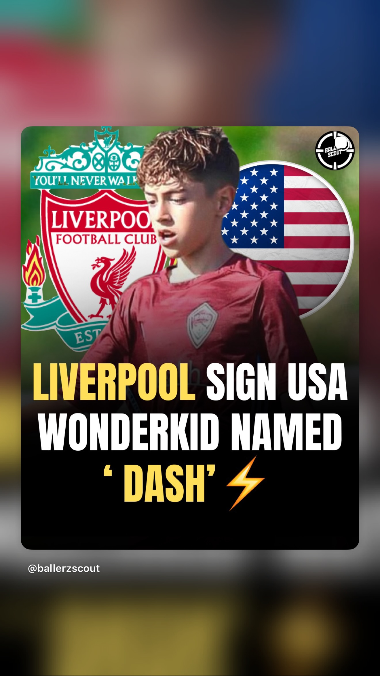 利物浦青训经过一段试训后,科克比签下了14岁美国前锋,诺亚达什艾伦(一年前
