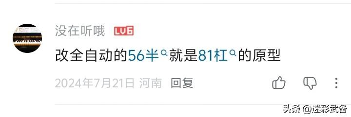 魔改56半自动步枪,网友:这不就是81杠吗? 魔改56半的版本很多,尤其是欧美民间枪械爱好者更是驾轻就熟,但大多数都是改变外形却保留它的半自动功能。可也有改成全自动的,这一类改造出来的枪在美国需要持有联邦相关资质,且不能在市场上买卖或赠予他人。有人看到魔改56半自动步枪后断言:56半改全自动就是81杠! 网友能有这样的反应,也只能说81式自动步枪在设计上确实太过于保守,这话不是贬低,只是它总能让你有一种感受到它在努力突破,结果出来却是一个缝合怪的感觉,尤其是了解第二代国产自动步枪几款竞标枪型的印象更强烈。摊开来说,比如81式自动步枪的加长枪机部件使用与枪机框上的导轨在运动中更稳定,因此提升了射击精度而被众人津津乐道,可这在几十年前的56半的母版SKS就是这样设计的;81式自动步枪机匣过长导致弹匣太过靠前,这跟56半一样;又比如81式自动步枪短行程活塞,SKS就是短行程活塞,中途还夹着改进可调节式导气阀的63式;圆柱式拉机柄、大开口抛壳窗。。。难怪网友会这么认为。 56式半自动步枪虽然已经退役多年,但它的精度也是被很多老兵给予赞许,如今有一部分库存完好的56半重新拿出来,加装瞄准镜改成半自动狙击步枪配发给特警部门使用。