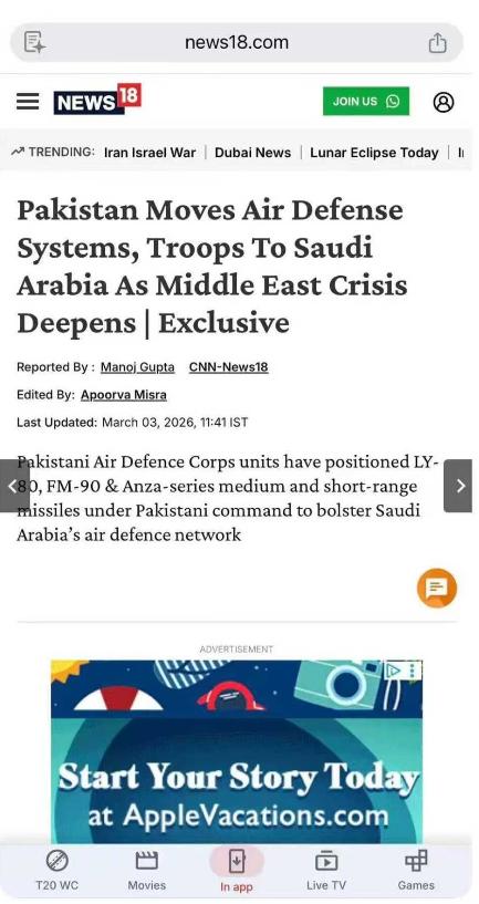 巴基斯坦下场了。 巴基斯坦把中械防空部队,LY-80,FM-90等装备开去沙特履行条约了。 这份协定里写得明明白白,任何针对一方的攻击都会被视作对双方的侵略,巴基斯坦此次出兵正是冲着这份有法律约束力的约定而来。 中东局势近期持续升温,以色列和伊朗的冲突让海湾地区安全压力陡增,沙特对防空能力的需求变得愈发迫切。 巴基斯坦陆军早在2017年就正式列装了LY-80中程防空系统,这款中国红旗-16的出口型装备在巴方手中已经形成成熟战力,它能在13分钟内完成行进到发射的快速部署,具备全向攻击能力和极强的抗干扰机制,对付掠海反舰导弹这类目标时表现突出。 FM-90近程防空导弹则是巴方海军和陆军都在用的装备,作为红旗-7B的改良出口型,它的反应时间仅需6秒,能拦截20米以下的超低空目标,防御面积超过60平方公里。 这两款装备都是中巴军事合作的成熟产物,巴基斯坦不仅掌握了完整的操作技能,还具备基本的维护能力,此次部署沙特也是对中械装备实战性能的一次重要检验。 此次部署的部队由巴基斯坦防空部队直接指挥,所有装备都会整合进沙特现有的防空网格,双方士兵将展开紧密协同。 沙特方面早就有巴基斯坦军事人员的身影,目前已有超1000名巴方军官在沙特担任军事顾问,这种长期积累的合作基础让此次部署衔接更加顺畅。 前巴基斯坦陆军参谋长拉希勒·谢里夫正负责监督相关行动,他同时担任着43国伊斯兰军事反恐联盟的负责人,这一安排让两国军事协作更有保障。 巴基斯坦空军的两架伊尔-78空中加油机兼运输机,3月1日已经从努尔汗空军基地转场至卡拉奇,随后便承担起向沙特运送部队和装备的任务。 这些运输机搭载的不仅是LY-80和FM-90导弹系统,还有配套的雷达指挥设备和保障人员,整套防空体系的完整部署能让沙特的低空防御能力得到显著提升。 从历史来看,巴沙两国的军事合作早有渊源,上世纪80年代就有超过2万名巴基斯坦士兵驻扎在沙特敏感地区执行任务,此次部署只是双方长期合作的制度化延续。 沙特为巴基斯坦提供了稳定的经济支持,2025年还追加了50亿美元的国防援助,而巴基斯坦则用成熟的军事力量为沙特的安全保驾护航,这种“资金换安全”的模式让两国合作根基稳固。 LY-80采用垂直发射设计,取消了阻力较大的弹翼,换成了更符合空气动力学的边条结构,能有效提高抗饱和攻击能力。 FM-90则通过模块化设计实现了灵活部署,既可以拖车牵引也有自走型号,适应沙特不同区域的防御需求。这两款装备的技术核心虽然由中国掌握,但巴基斯坦通过多年使用已经摸透了性能特点,能根据沙特的战场环境进行针对性部署。 巴基斯坦国防部长伊沙克·达尔已经正式通知伊朗此次防御部署的相关情况,明确表示这些装备仅用于防卫用途。 伊朗方面也作出回应,要求沙特领土不得被用于攻击伊朗,这一沟通让此次部署的防御属性更加清晰。 对于沙特而言,引入巴基斯坦的中械防空部队,是在依赖美国安全保障的基础上增加了新选项,形成了多元安全格局。 此次部署没有涉及核力量,完全是常规防务合作的范畴,这也符合两国协定的核心精神。巴基斯坦的中械防空部队进驻沙特后,将重点承担利雅得及麦加、麦地那圣寺等关键区域的防空任务,这些区域的安全对沙特有着特殊意义。 两款中械装备的互补搭配,能形成中近程、高低空结合的防御网,有效应对无人机、巡航导弹等各类空中威胁。 巴沙两国的这次军事协作,既体现了防御协定的严肃性,也展现了中械装备在国际防务合作中的实用价值。 巴基斯坦用自己熟悉的装备履行条约义务,沙特则通过多元合作强化自身安全,这种基于共同利益的协作,在复杂的中东局势中显得格外务实。随着装备陆续到位和人员完成部署,这套中械防空体系将很快在沙特发挥作用,为地区稳定注入积极力量。