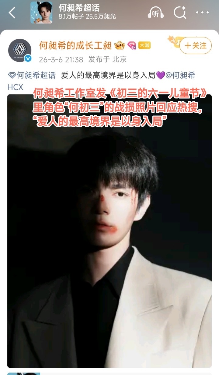 何昶希工作室首发bl剧角色何初三的剧照图和文案“爱人的最高境界是以身入局”,评论区粉丝问工作室这时候发是什么意思。