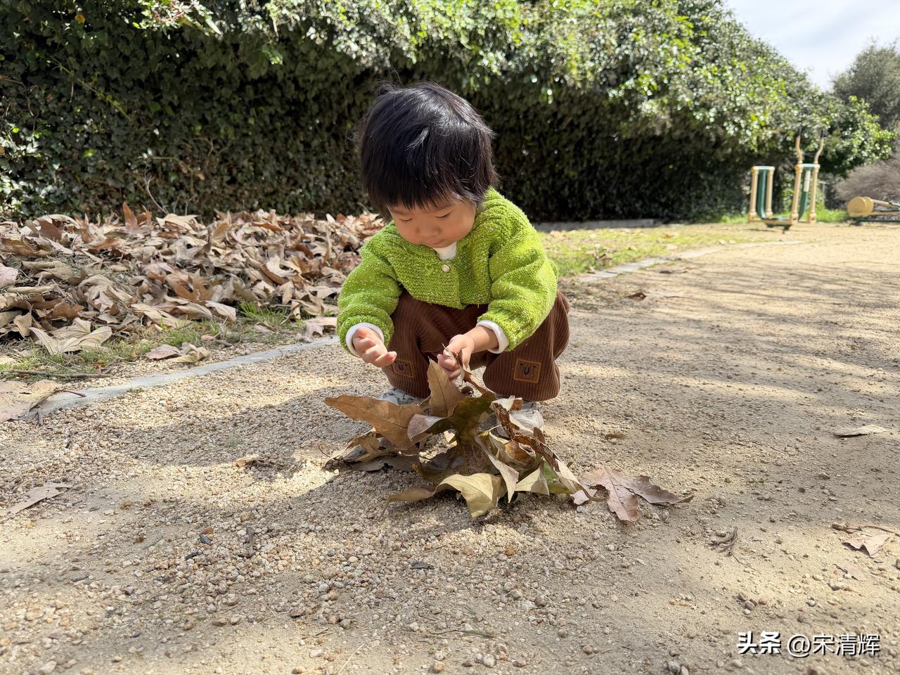 (1564):妹妹今天在林中捡树叶、玩沙石,玩了一个上午,该吃午饭的时候也不愿意回家。这一点,跟大哥宋昊然很像。