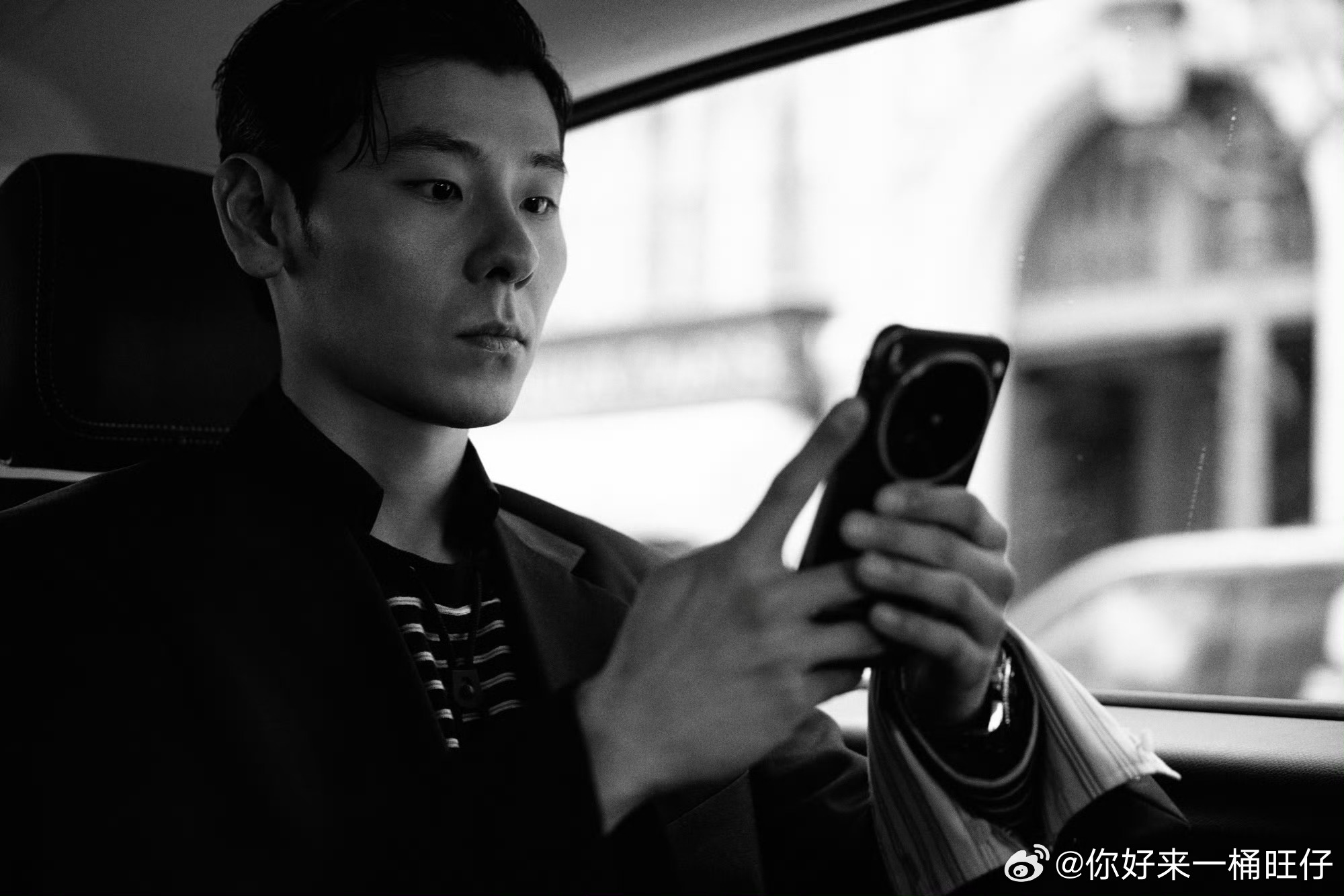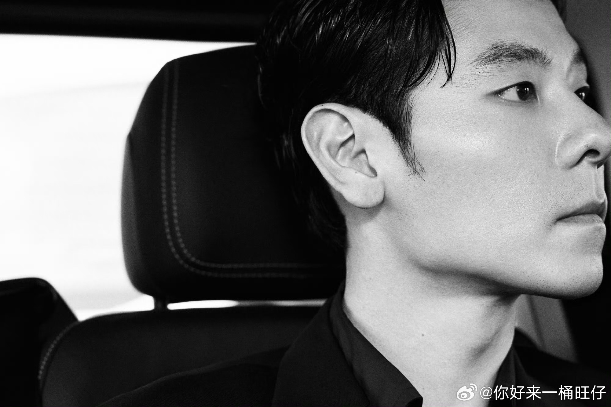 蒋奇明看秀,一身黑色西装气场拉满,表情冷峻又有点漫不经心,松弛感upup