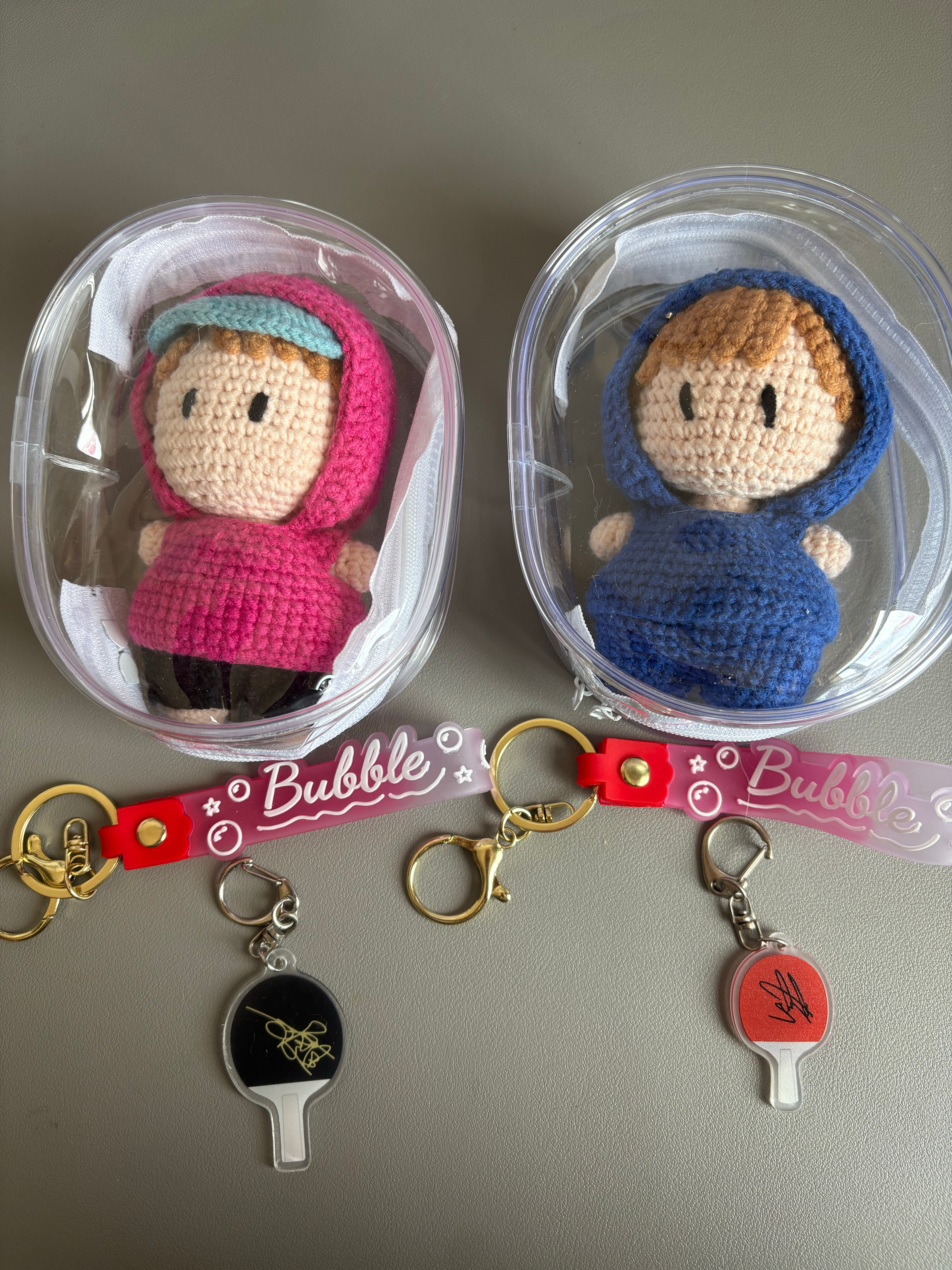 感谢姐送来的纯手搓钩织娃娃和两个胖胖球钥匙扣超级萌啊抱着吸了好几口