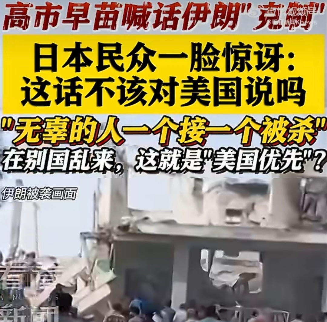 高市早苗要伊朗克制惊呆日本人高市早苗对伊单边表态,暴露其外交短视。中东问题需平衡各方、推动对话,而非片面施压。此举既不符合国际法基本精神,也背离日本战后和平路线,引发国内质疑。一味追随外部立场,损害日本外交独立性,也给地区稳定添乱,对解决冲突毫无益处。