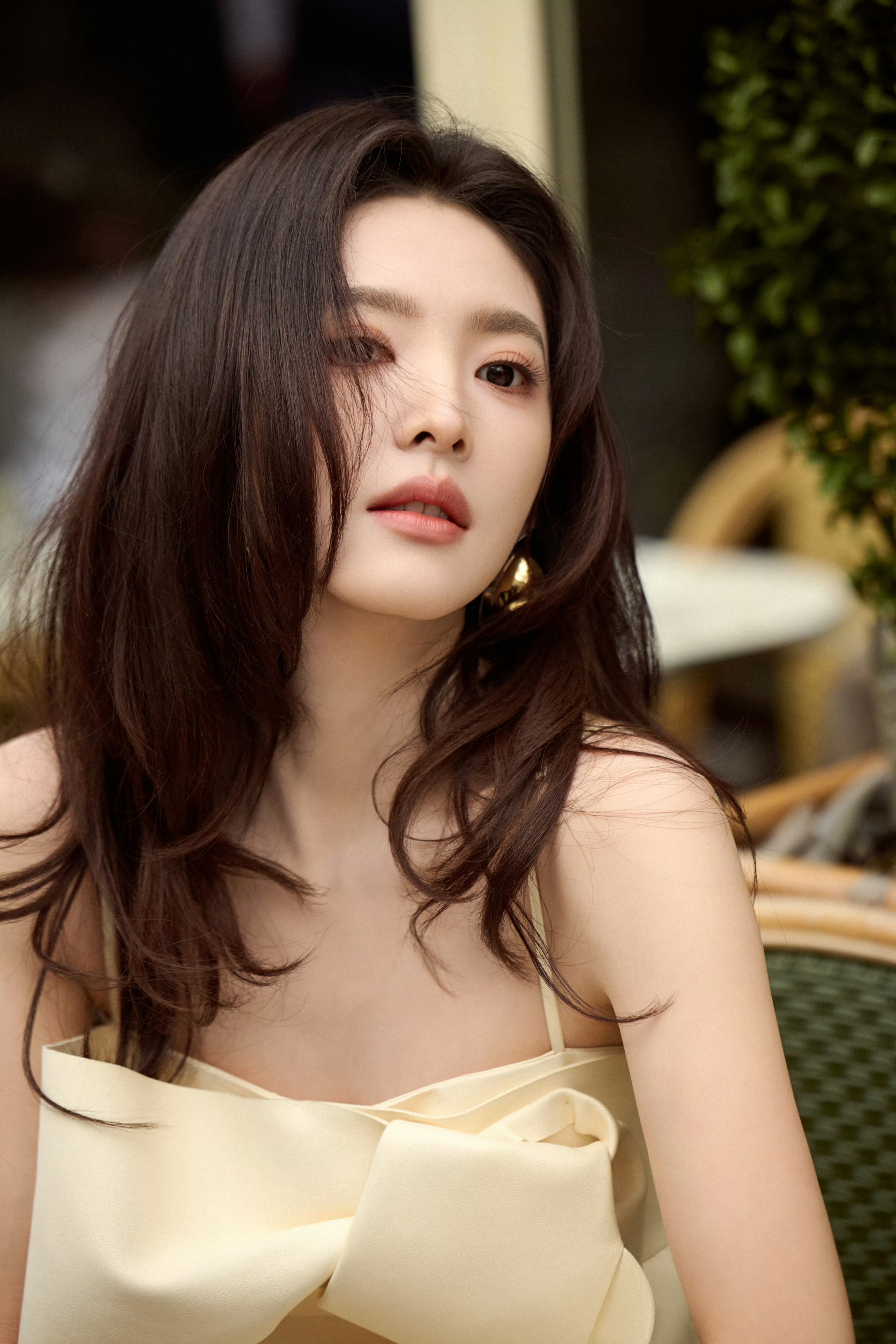 藕粉色抹胸裙、回眸一笑神秘魅惑——白鹿。每日明星美图分享