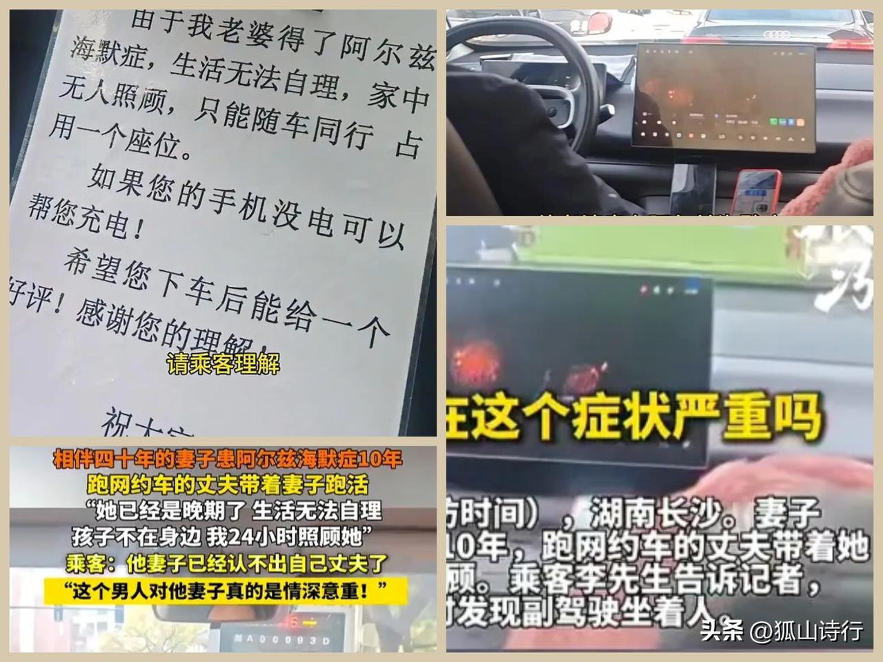 【引用】湖南长沙,一男子叫了辆网约车,打开网约车车门发现副驾驶坐了个女子,男子以为自己叫到了拼车,后听司机解释说这名女子是他的妻子,患有阿尔兹海默症,现生活不能自理,所以只能一边开车一边照顾!该男子听后称赞:你有大爱之心!夫妻情深义重! 这位长沙网约车司机的故事,平凡却直击人心。他没有惊天动地的誓言,只是把患病的妻子带在身边,一边谋生,一边照料,用最朴素的行动诠释了“不离不弃”。阿尔兹海默症会带走记忆,却带不走日复一日的陪伴与担当。 很多人说“夫妻本是同林鸟,大难来时各自飞”,可现实里,更多普通人选择了相扶相持。生活很苦,但有人同行就不孤单。他扛起的不仅是生计,更是一个家的责任与情义。 这份感情没有华丽包装,却比任何情话都动人。他告诉大家:真正的爱,不是顺境里的甜言蜜语,而是困境中稳稳的守护。愿每一份深情都被善待,愿这对夫妻平安安稳。 【注】图片及参考信息来源 九派新闻