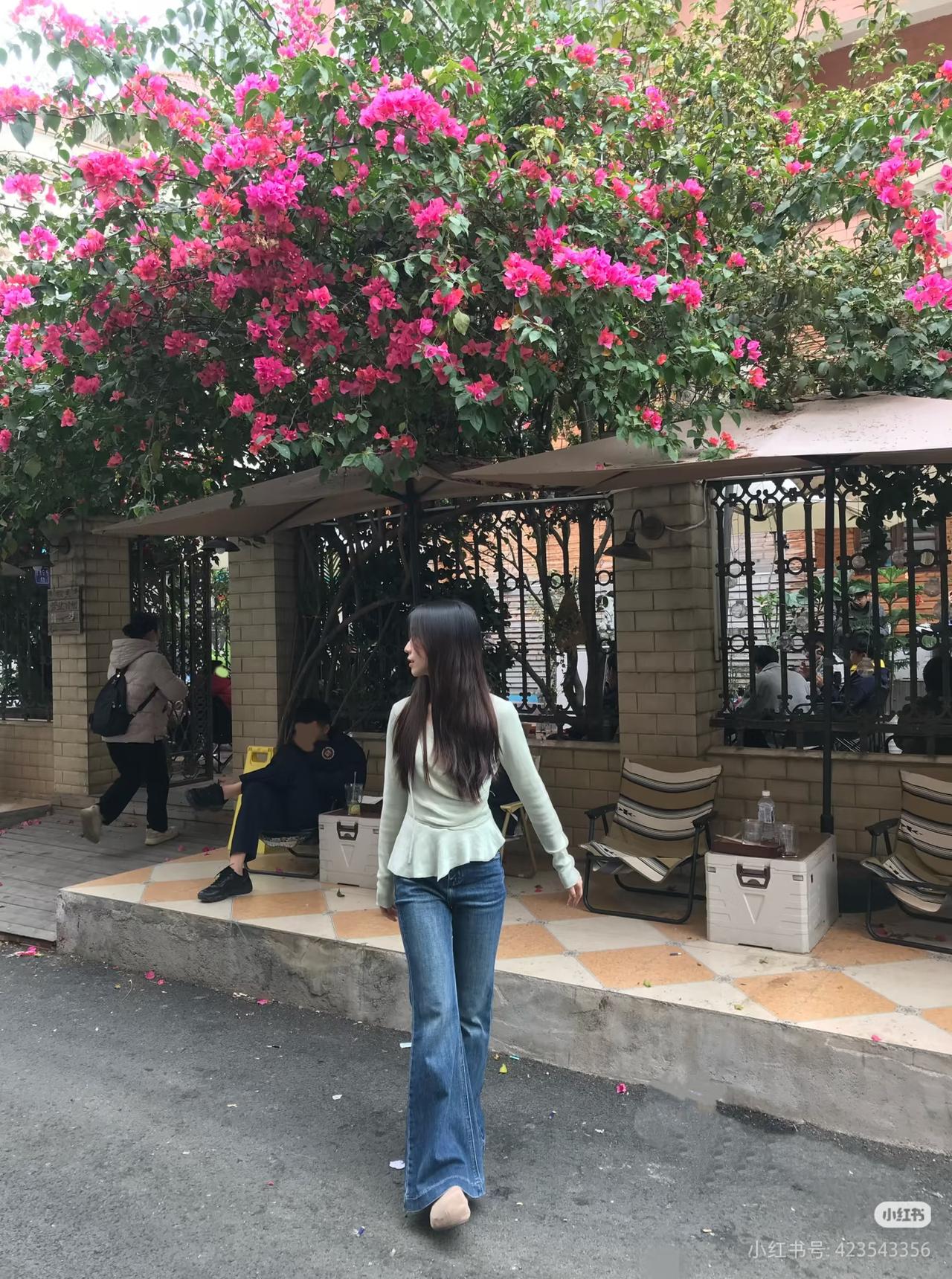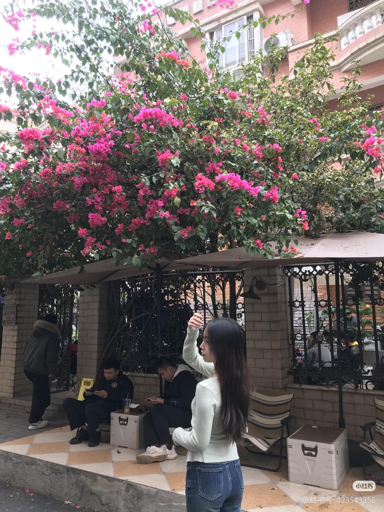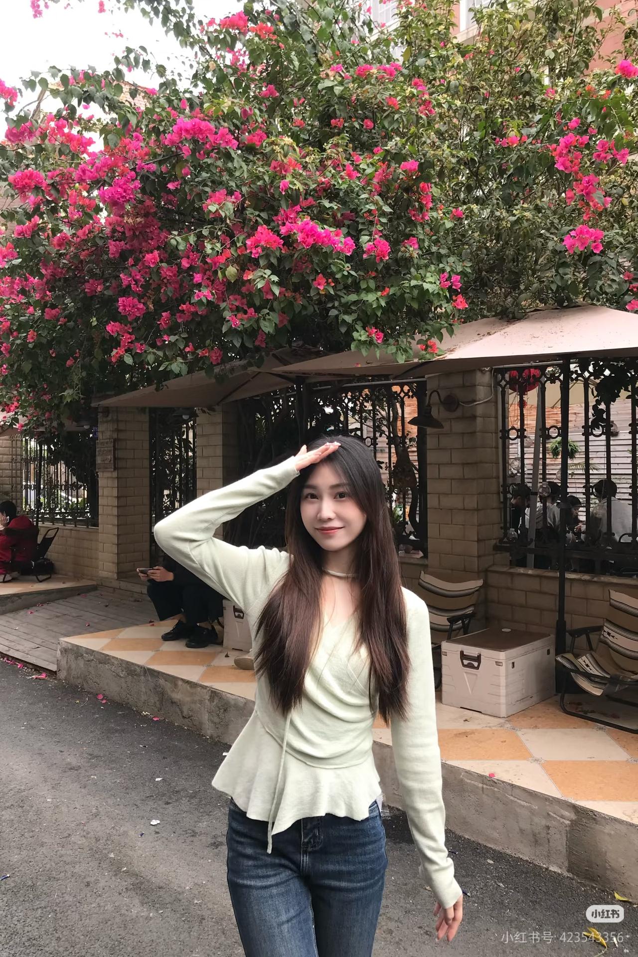红墙映日影,白衣拂春风。