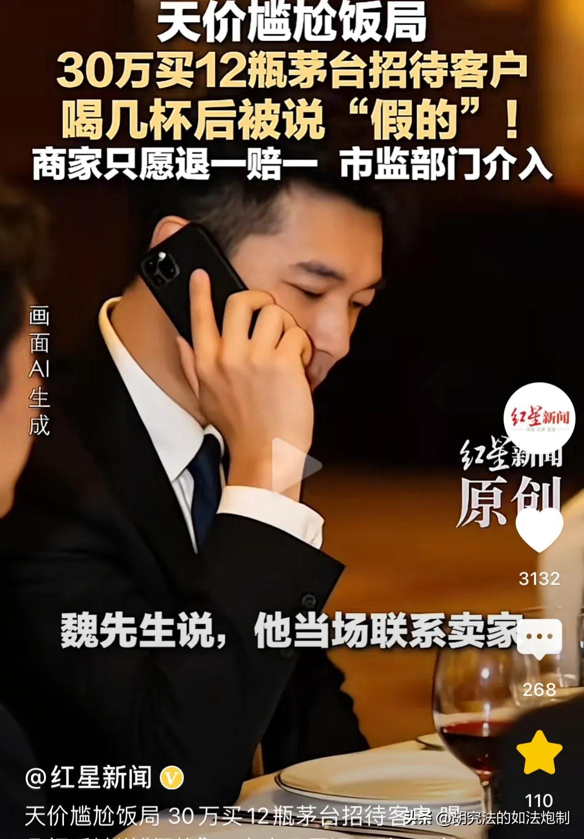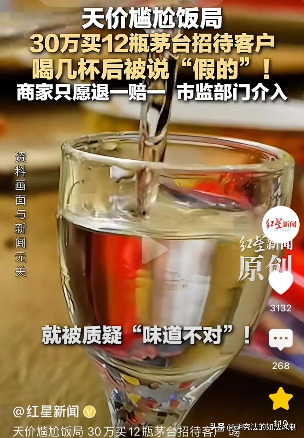 用假酒招待客户,太尴尬了!四川德阳,男子花30万买12瓶“50年茅台”招待客户,结果喝了几口,客户感觉口感不对,怀疑是假酒。男子面子挂不住,当场打电话给卖家,卖家保证酒是真的,假一赔十。可男子把剩的酒送去检测,却没有一瓶真的。卖家又说是上游供货,自己并不知情。愿意赔男子12瓶老酒。男子干了:用假酒招待客户,我面子都丢尽了!退一赔三还不愿意?网友:82年的拉菲,还没卖完。 魏先生是一家公司的高管,为了招待重要的客户,同时也体现公司对客户的重视,魏先生特意安排了一场酒局,还专门花了30万买了12瓶50年茅台。 吃饭的餐厅是当地排得上号的,桌子上的菜也是鲍鱼龙虾应有尽有,再搭配上30万买的茅台,绝对算得上是一场高规格的酒局。 魏先生早早的便来到了餐厅,客户刚下车,魏先生便带着客户来到了餐厅。 等众人相互寒暄了几句后,魏先生拍了拍手指示餐厅服务人员开始上菜。 客户被魏先生的诚意也打动了,脸上的笑容就没有停止过,还一个劲的夸魏先生年轻有为,有格局,前途一片光明。 魏先生表现得很谦虚,说这些都是他应该做的,还提出希望和客户来个不醉方休。说完魏先生便把他提前准备好的茅台拿上了桌。 大家都是生意人,平时的应酬自然不会少,对于茅台的价值自然非常熟悉。 当客户看到50年茅台被端上桌的时候,已经在心里想好了:魏先生这个朋友他是交定了。 服务员帮在场所有的人都斟了满满一杯,接着魏先生便举起杯来,感谢各位客户的莅临,随即。将杯中的酒一饮而尽。 其他宾客纷纷效仿,同样把杯中的酒喝得干干净净。 可当酒刚进到魏先生的嘴巴里,就觉察到有一丝丝的不对劲,不过至于哪里不对劲,魏先生也说不出来。 魏先生用眼角瞄了一眼重要客户,只见重要客户喝完酒之后,脸上竟露出疑惑的神情,这让魏先生见了心里不免忐忑起来。 这是什么情况?难道是度数不够? 面对魏先生的询问,客户干笑了几声,尽可能用诙谐的语气回道:这酒的味道,我还是第1次品尝过呢。 魏先生听完心里直接凉了大半截,以客户这种身份和地位,什么样的酒他没喝过? 魏先生又不傻,他自己也觉察出来这个酒有问题,客户是不好意思直说吧。 客户不说,魏先生却不能不表态。要是被客户误以为魏先生拿假酒糊弄他,那这桩生意可就算是彻底泡汤了。 为了证明自己的清白,魏先生当场就给卖家打去了电话。 谁知卖家在电话那头信誓旦旦的保证:绝对是真酒,假一赔十! 一边是卖家,一边是客户,魏先生毫不犹豫的选择相信客户,他于是把剩下的还未开封的6瓶酒送去检测。 检测结果出来了,那6瓶酒全部都是假酒。 这可把魏先生给气坏了,为了能谈成这个项目,魏先生精心准备了那么长时间,各个环节反复推敲,没想到在酒上净出了幺蛾子。 这次可好了,因为假酒事件直接影响了他的职场声誉。 魏先生再次联系到卖家,还把检测报告给卖家看。谁知卖家却一推三六五,说货都是上游供的,至于真假也不知情。 不过为了表示歉意,供货商愿意赔给魏先生12瓶老酒,或者赔两瓶普通的茅台。 魏先生又不是差那点钱的人,这样的赔偿他自然看不上,他更在意的是自己的信誉,同时也希望卖家能够讲信誉,说好的假一赔十,可如今连退一赔三都不同意。 魏先生一气之下进行了举报。 有人调侃,50年茅台价值本来就高,花30万买了12瓶,想一想也觉得不可能。魏先生竟然还用这些茅台去招待重要客户,这不是存心给自己找不自在吗? 讲个笑话,82年的拉菲至今都没卖完! 《食品安全法》第148条规定,生产不符合食品安全标准的食品或者经营明知是不符合食品安全标准的食品,消费者除要求赔偿损失外,还可以向生产者或者经营者要求支付价款十倍或者损失三倍的赔偿金;增加赔偿的金额不足一千元的,为一千元。 酒本来就属于食品的范畴,假酒自然会被认定为不符合食品安全标准的,商家知假卖假,作为消费者的魏先生,完全有权利主张退一赔十。 只不过做生意最讲究的就是信誉和面子,出现这样的情况,也难怪魏先生会如此激动。 对此你怎么认为?