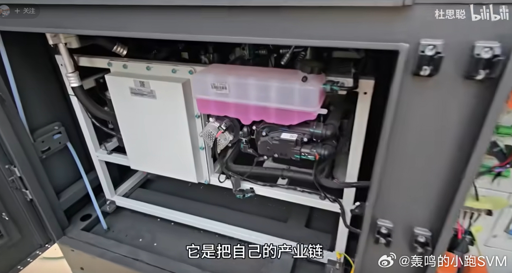 看到这个闪充桩的解析,里头的这个壶熟不熟啊?再往里就是一眼车规的散热器。很好玩了---这就是基建狂魔、工业克苏鲁。当你玩好了“汽车”这件事以后,车规级的产品吊打全市场工业标准,干什么都可以了,于是“复用”,就成了“量大摊薄”的另外一件事了。你们猜,闪充桩上有多少东西来自于“车上零部件的复用”?