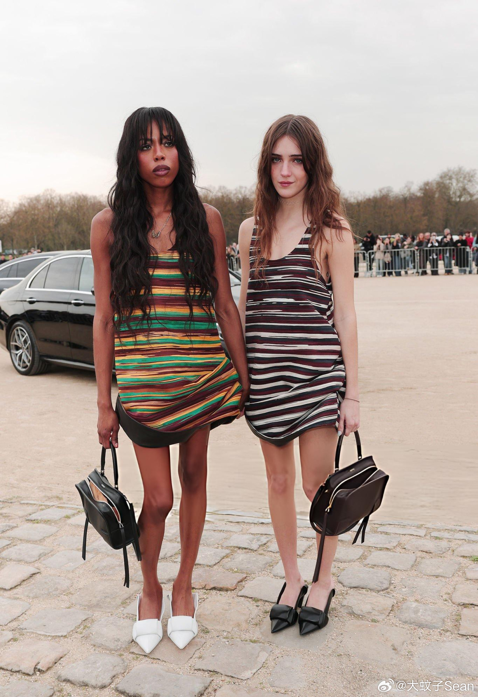 Talia Ryder塔莉娅莱德在巴黎时装周期间出席观看Loewe大秀,和演员True Whitaker手牵手到场
