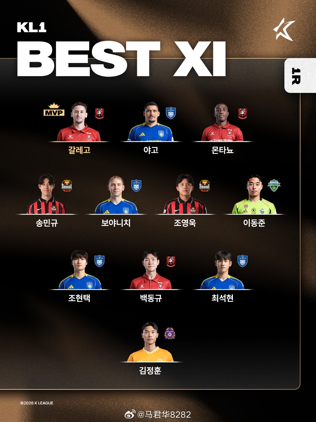 官方:完成梅开二度的浙江FC旧将亚戈入选K联赛首轮最佳阵容。