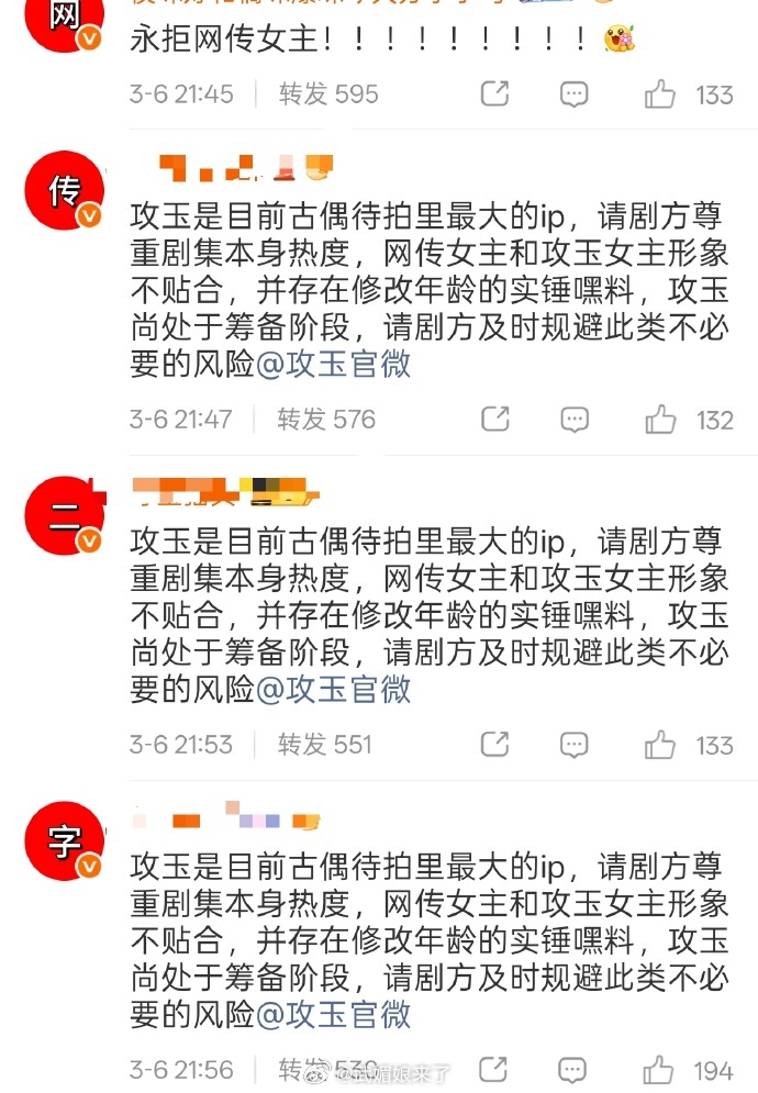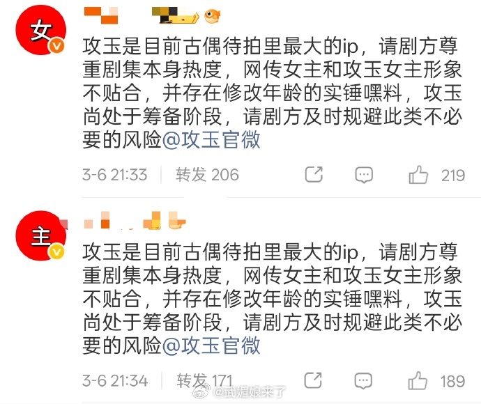 侯明昊粉丝攻玉官微排字永拒鹤男