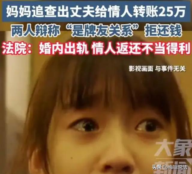 四川绵阳,14岁女儿玩爸爸手机,却看到爸爸跟一位阿姨聊得火热,还给她不断的转钱。女儿悄悄告诉了妈妈,妈妈一查,发现爸爸竟然偷偷的跟外面女人好上了。妈妈继续查看手机,丈夫手机里还保留了跟外面女人的录音,瞬间女子就寒透心,准备申请上诉离婚,还去银行拉了流水。经查,丈夫一共给外面女人转账25万元,妻子要求对方全额退还。 案子审定的时候,丈夫跟情人一直抗辩,只肯返还一半的钱款。经过妻子的不断深挖、提供证据,最后终于如数要回了本该属于自己的共同财产。 (本新闻参考来源:深圳新闻网) 虽说女儿是爸爸的小棉袄,但是如果爸爸做坏事了,小棉袄就是漏风的。 李女士跟唐先生结婚多年,婚后生育一个可爱的女儿小唐。 婚后多年来,夫妻俩共同经营生意,家庭还是非常美满的,也赚到了不少钱。 一转眼,孩子都已经14岁了,这些年来,风风雨雨,夫妻俩的感情生活,也面临着不少挑战。 要说唐先生如今经济稳定,生活安稳,难免心思就开始有些向外野了。 李女士经常发现丈夫偶尔的夜不归宿,要么周末也不回家。 有的时候在家里,就挑三拣四,总要找些茬跟妻子吵架。李女士明显感觉到:丈夫的心,变了,跟以前不一样了。 看到丈夫感情、态度的转变,李女士内心难免有所怀疑:丈夫是不是外面有人了? 因为聚少离多,夫妻俩后来直接就分居了,很少住在一个房间里。这样李女士就更加拿不到太多的证据。 直到有一天,14岁的女儿小唐去父亲那个房间里玩,就拿起爸爸的手机玩耍。 当时爸爸并没有留意手机被女儿拿走了,唐先生则在另外一个房间里工作。小唐无意间就点开了一通录音。 “这些年,我都花20多万在你身上了。”“你就好好的做我的女人”等等之类的。 对方女子也回了不少话:“你的人生中可能再也遇不到我这么乖的女子了吧。” 小唐留意到这些录音之后,她也很聪明,赶紧就拷贝下来,并且分享给了自己妈妈。 而李女士这边,赶紧顺藤摸瓜,去银行调流水,查询转账记录,发现总金额高达25万元。 看到这个金额,李女士跟丈夫大吵一架,气愤不已的唐先生竟然还离家出走,并且扬言要离婚。 要说离婚,李女士也是不害怕的,她也准备维权。 第一,婚内的财产分配,她一分钱也不想少得; 第二,丈夫作为过错人,在婚内犯错,离婚的时候财产只能少分; 第三,丈夫给情人转账的钱,她也会一分不少的全都追偿回来。 李女士准备先上诉,要求对方女人返还全部的转账。 而丈夫跟情人也不傻,竟然开始辩解。 情人王某表示,她跟唐先生没有不正当的男女关系,两个人就是牌友,互相转账。另外,唐先生经营生意,她就跟他兑换款项。 这些说辞都没有依据,相关工作人员则核实了李女士提供的证据,包括录音、转账流水等,这些都可以证明,唐先生跟王某存在婚外恋情的关系。 工作人员认为,唐先生跟王某存在婚外的关系,在跟原配婚姻关系存续期间,擅自将25万元转给王某,违背公序良俗,王某属于不当得利。 最后,判定也下来了:王某向原告李女士返还不当得利25万元。 本案释法: 男子在婚内犯错,跟外面女子好上了,还转账给外面的女子。原配妻子提出离婚,是否可以获得更多的财产分配支持? 是的,原配妻子在离婚时可以主张更多财产分配。 根据《民典法》第一千零八十七条规定,离婚时夫妻共同财产的分割应该按照照顾子女、女方和无过错方权益的原则判决。 这就意味着,即便没有之接的证据证明对方转移财产,或者只有微弱的凭证存在男子婚内跟他人同居、或者违反了夫妻忠实义务,只要有这样的行为在,相关部门在判定时,也会做出政策倾斜。 这就是法律的权威,婚内有犯错的行为,并且擅自转移夫妻财产,针对这样的情况,法律会明确保护无过错方的权益。 婚内犯错,有错的一方,就应该净身出户,或许原配妻子在上诉时,可以提出更狠的政策,或许多多努力一下,相关部门也会给予支持。 不然,犯错就跟零成本一样。 对此,您怎么看呢?不妨评论区留言讨论吧。