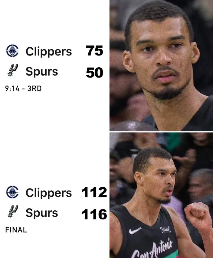这场马刺VS快船的比赛落后二十到最后翻盘,文班最后都落泪,这么多年马刺球迷,无法抑制的心情,动容,为这一支喜欢的队伍点赞!