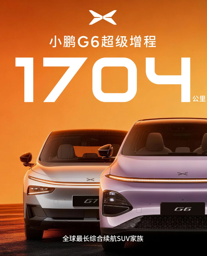 续航冲到1704公里!小鹏G6超级增程上市,18.68万元起。整车算力至高2250TOPS,搭载图灵AI芯片,Max版标配1颗、Ultra版3颗。Ultra系列4月推送第二代VLA,六项升级打造全场景国民车。小鹏G6
