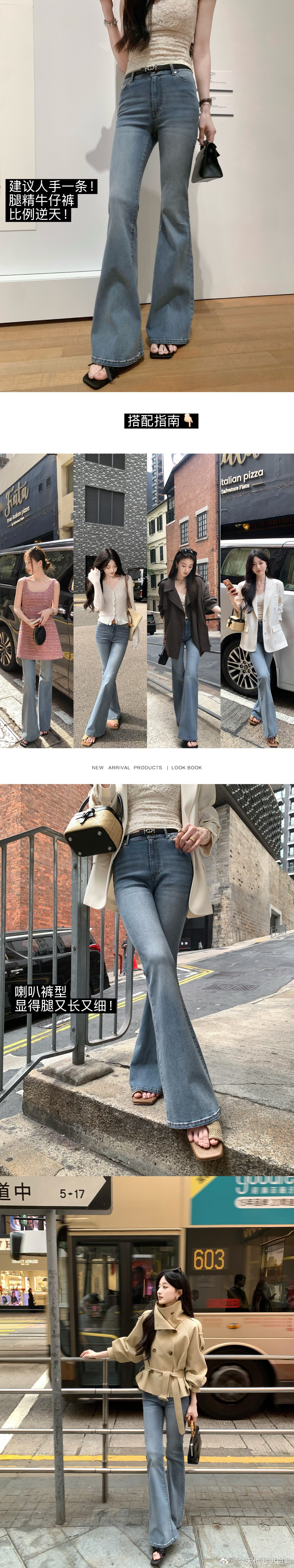 明天开始新品直播了哦~⏰可以重点关注一下这期的腿精牛仔裤!喇叭裤型超绝!!比例逆