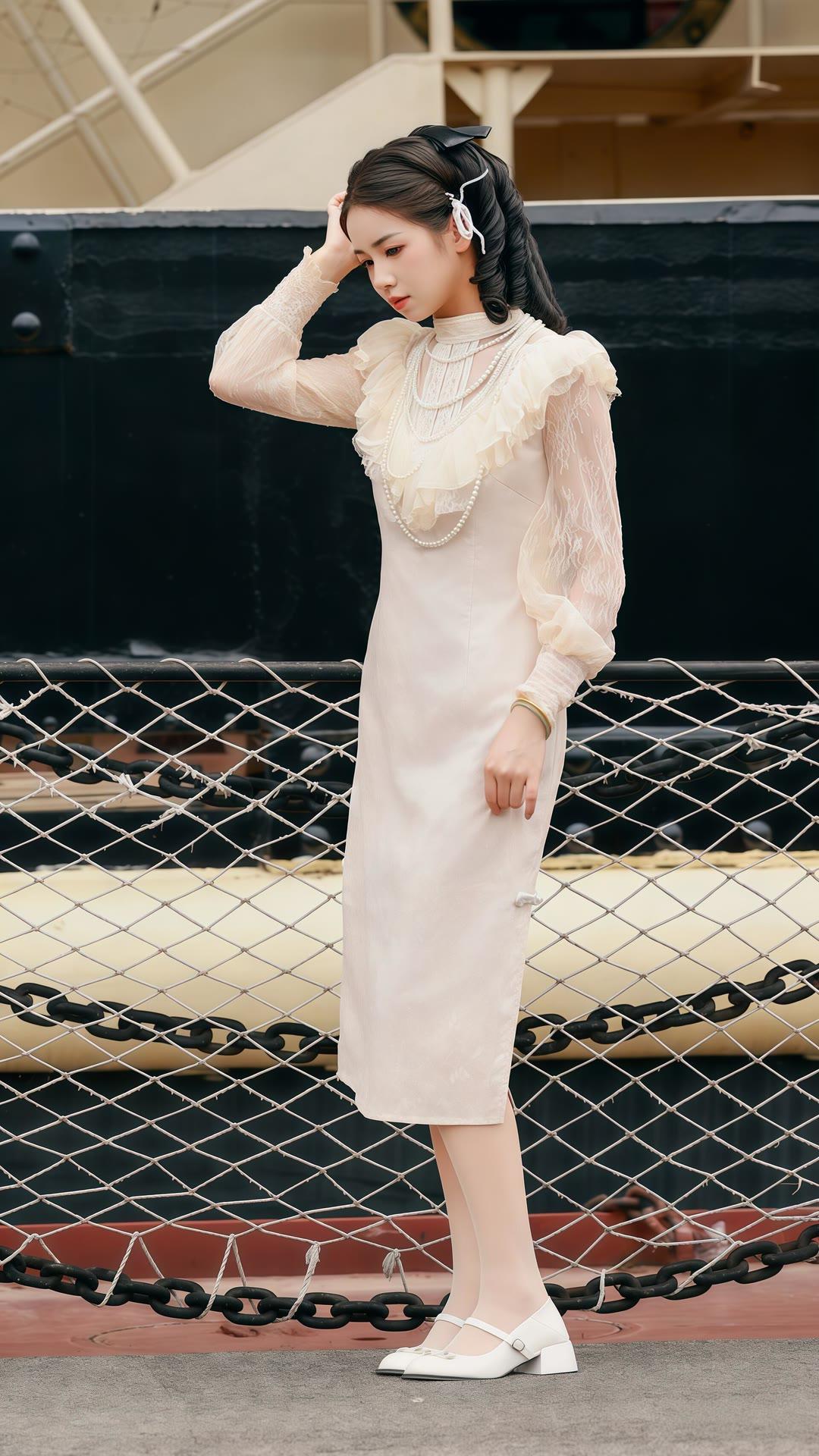 冬日暖阳下的优雅穿搭,白色大衣与灰色丝袜的完美搭配,尽显温柔与时尚。