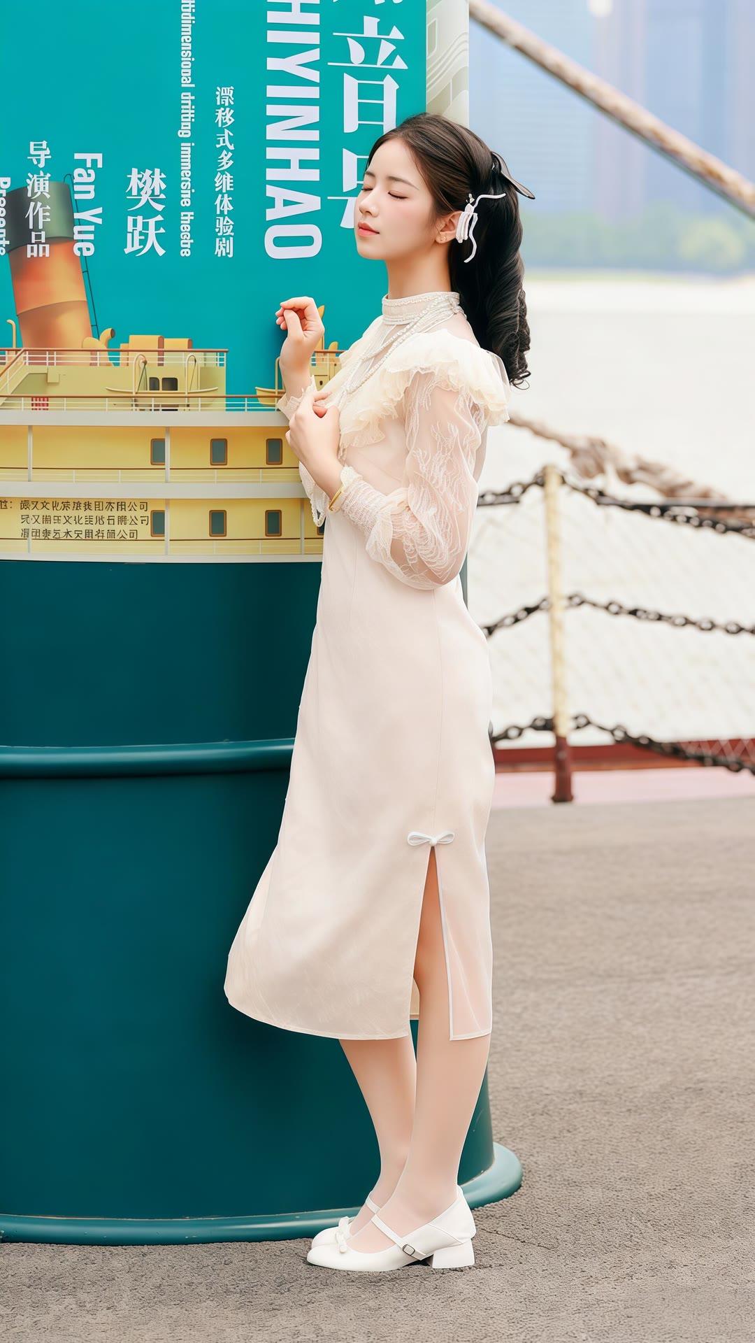 温柔粉穿搭,湖边漫步,静享美好时光