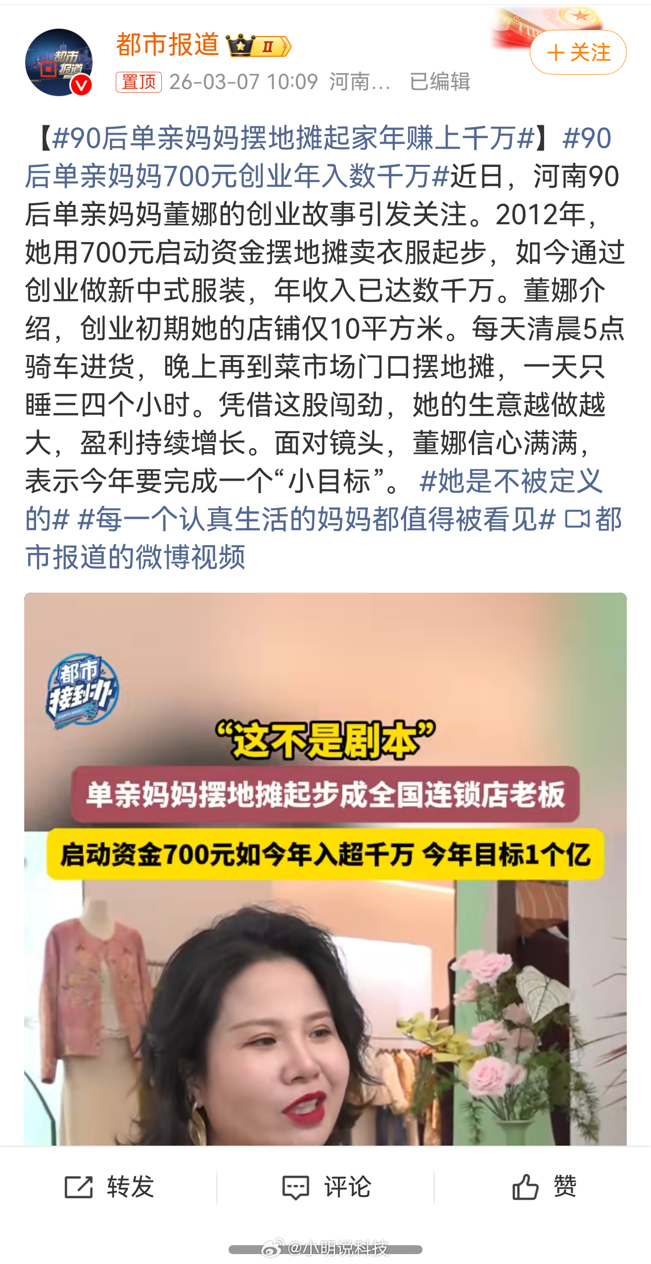 90后单亲妈妈摆地摊起家年赚上千万 这是女强人,真的很佩服!从摆地摊小本起步,一步步做到年入千万,不仅能吃苦扛住压力,还藏着超清醒的商业头脑。果然厉害的人,不管从哪行做起,都能凭眼光和韧劲把路走宽,太励志啦!